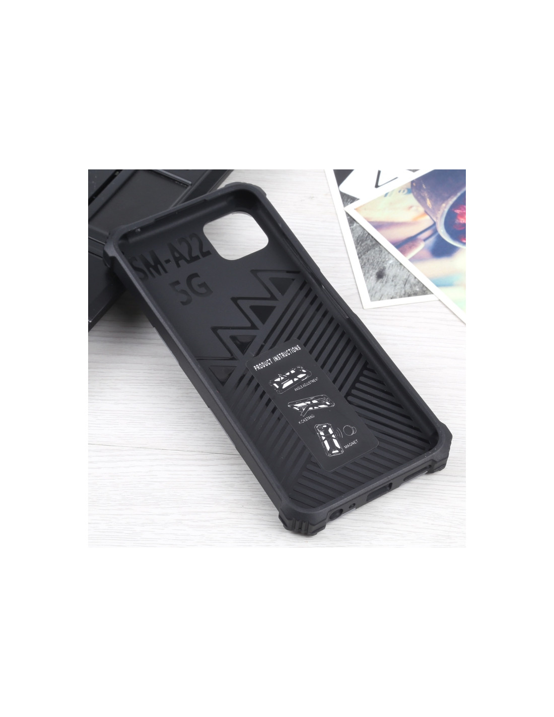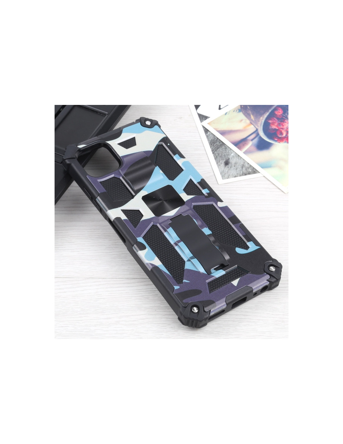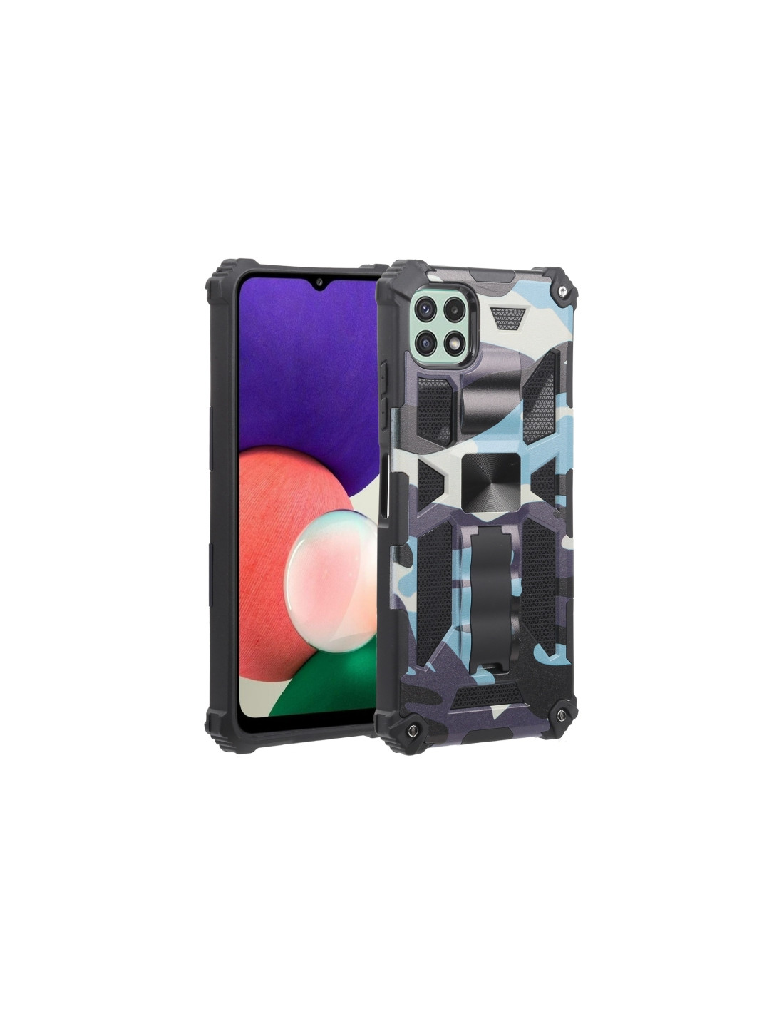 Cover antiurto per Galaxy A22 5G in TPU + PC con design mimetico blu Blu Navy. Protezione robusta e magnetica.