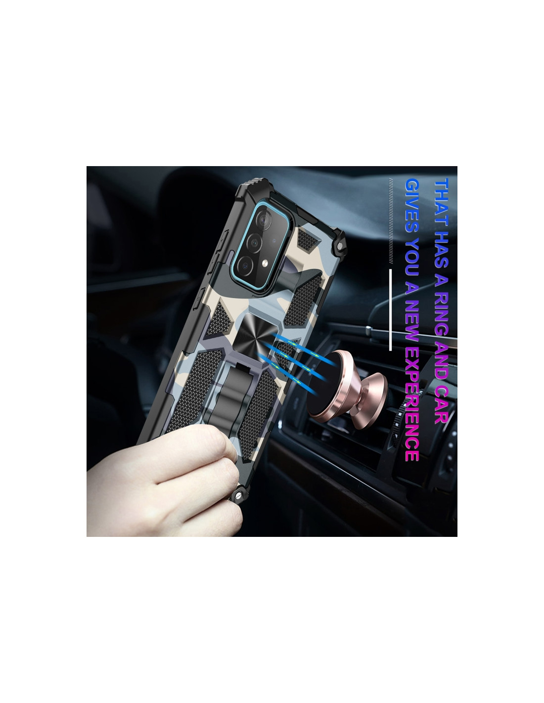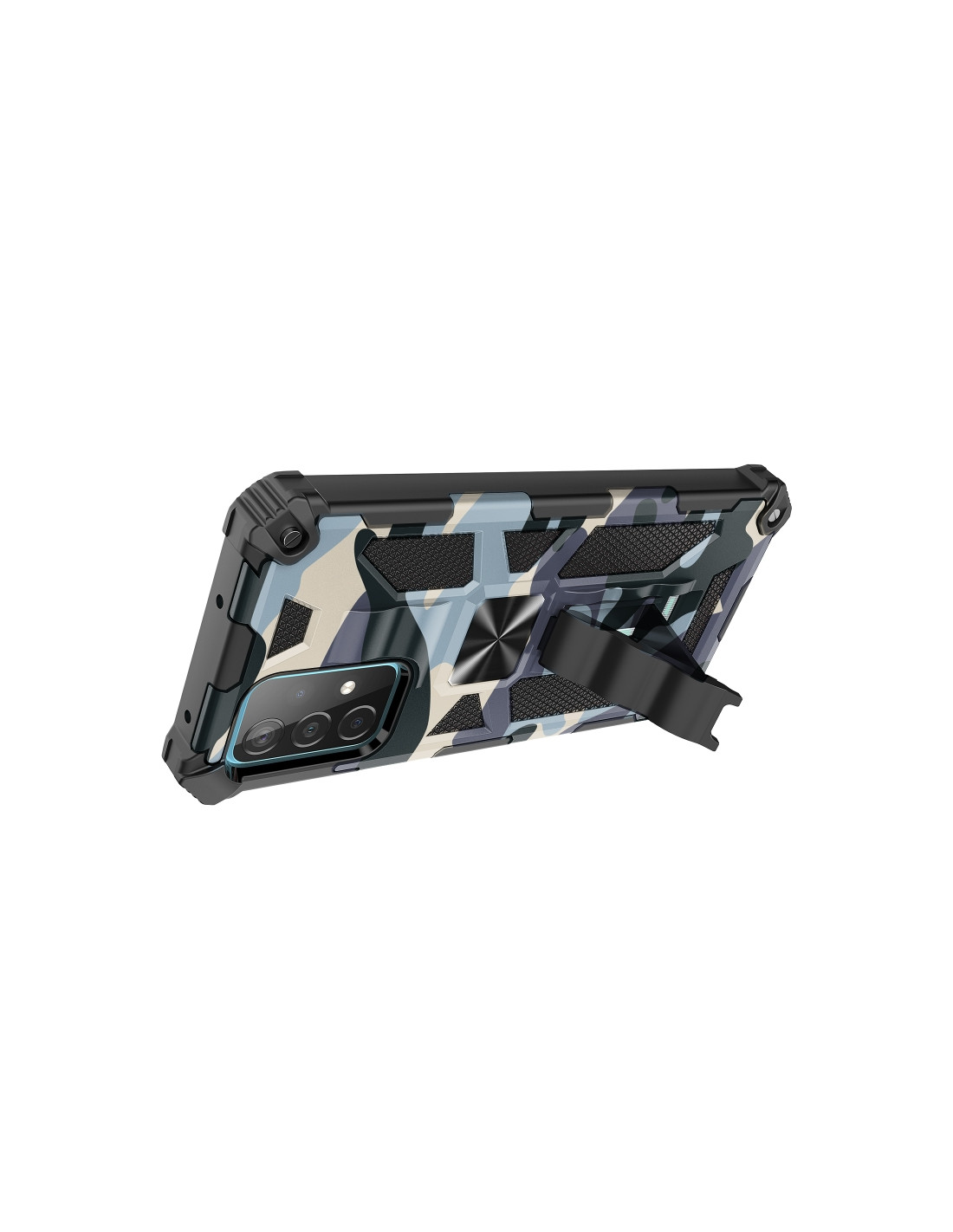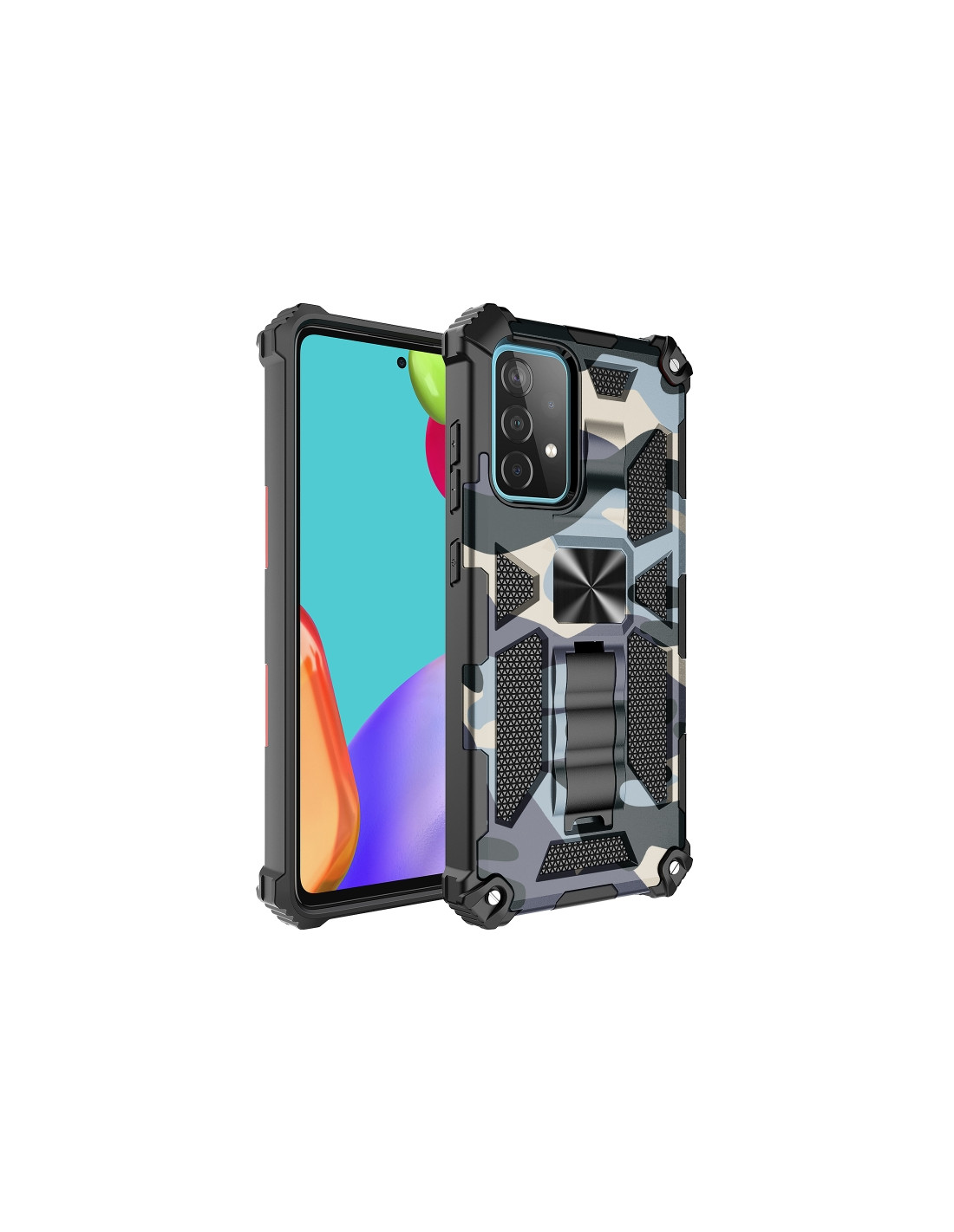 Cover antiurto per Galaxy A32 4G in TPU e PC con design mimetico verde menta e supporto magnetico integrato.