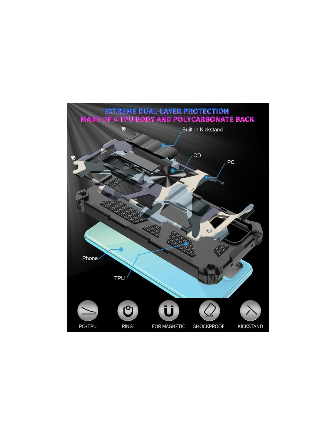 - Materiale TPU + PC per protezione antiurto