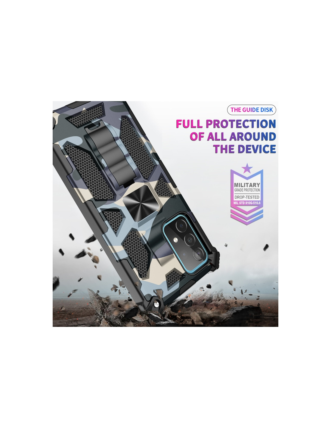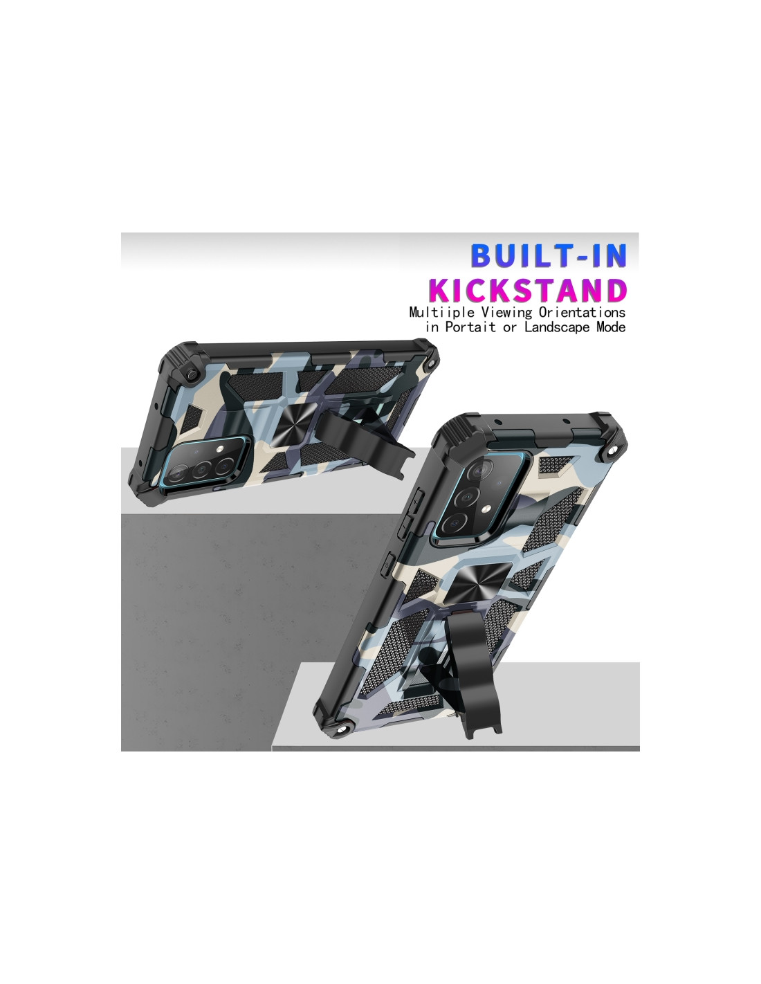 Proteggi il tuo Samsung Galaxy A32 4G con questa cover antiurto realizzata in materiale TPU e PC, che combina robustezza e design sofisticato. La fantasia mimetica in verde menta dona un look accattivante al tuo smartphone, mantenendo la massima protezione dagli urti e dalle cadute.