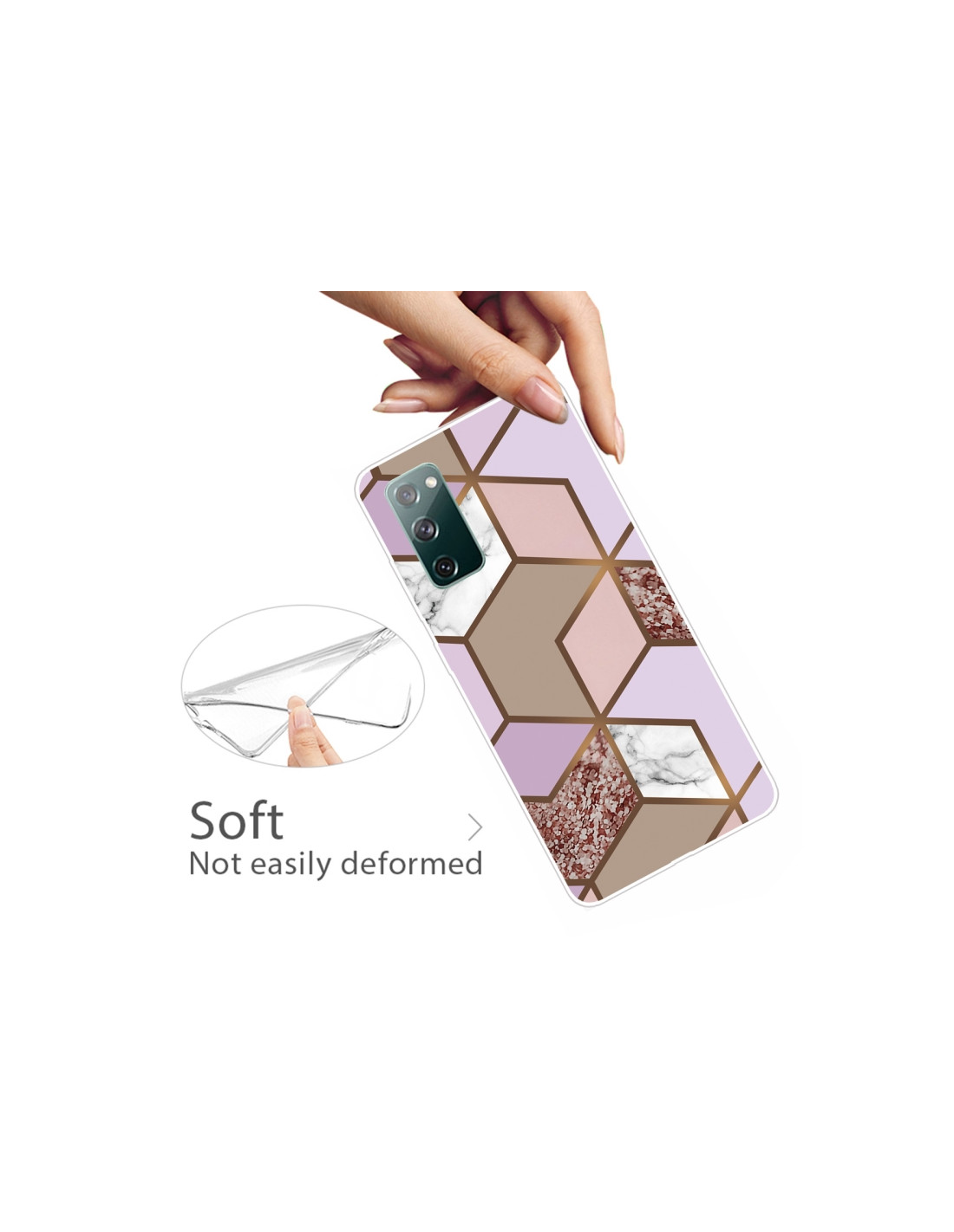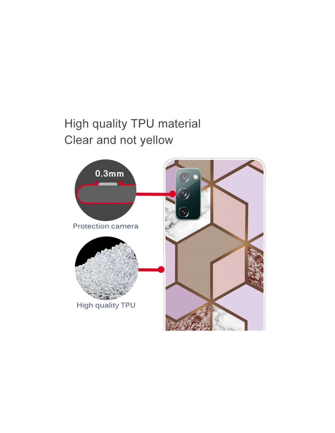 Proteggi il tuo Galaxy S20 FE con questa esclusiva cover antiurto in TPU. Il design marmo nelle tonalità arancione e viola offre un look sofisticato e moderno, combinando estetica e funzionalità.