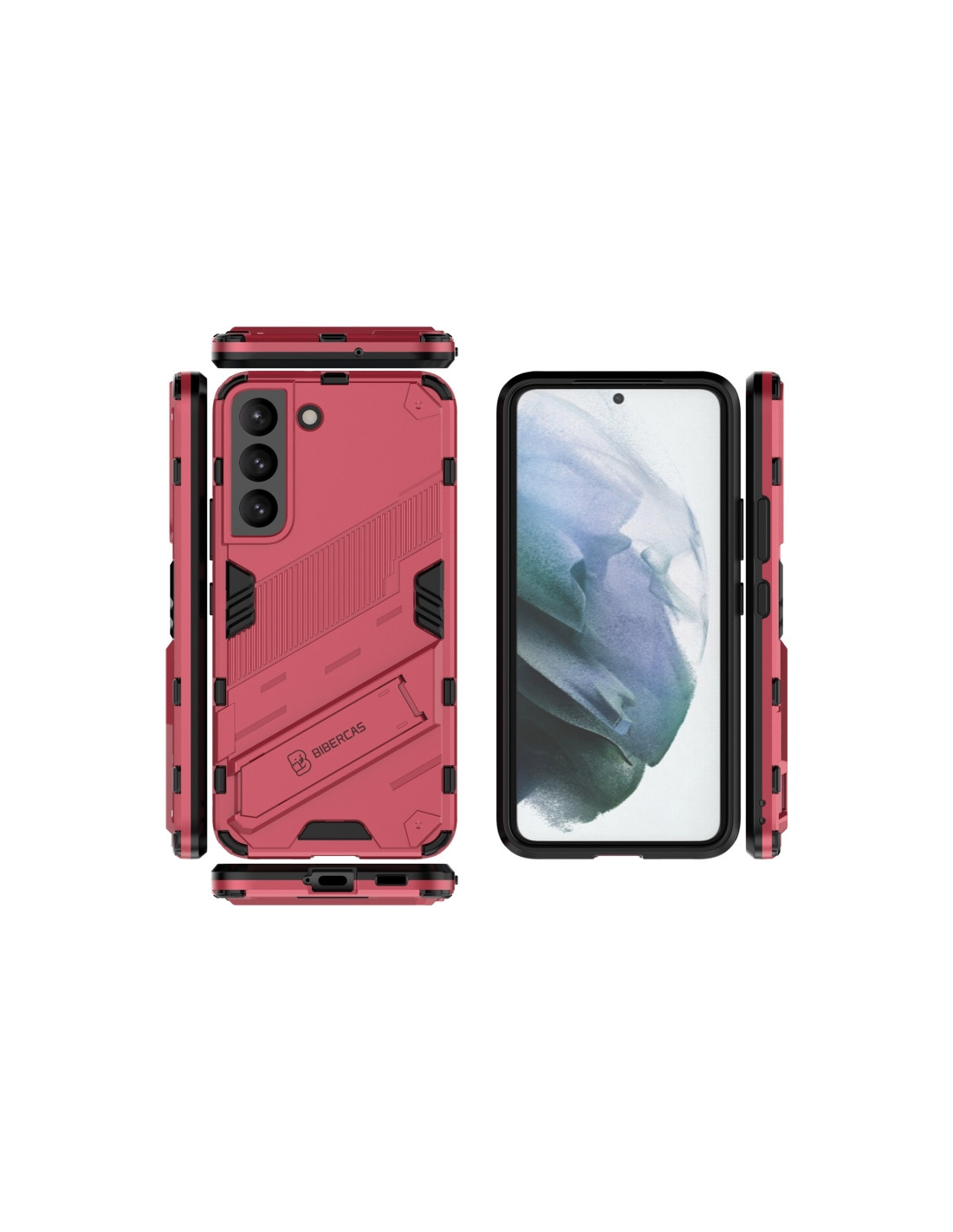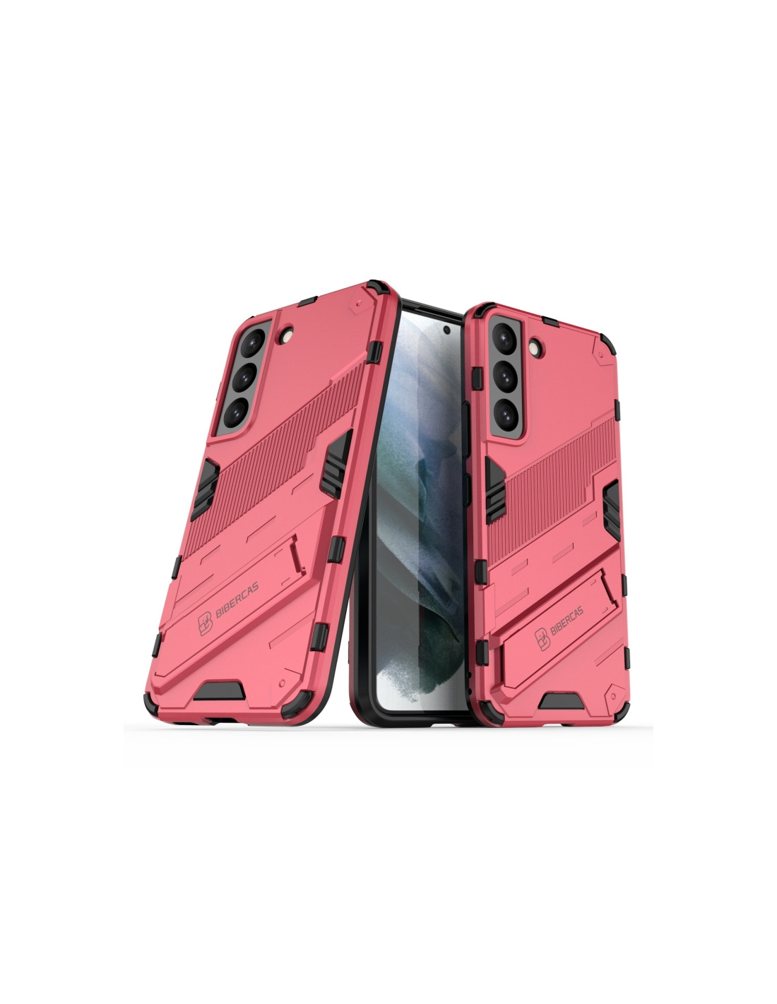 Cover antiurto Galaxy S22 5G in TPU + PC con design mimetico verde militare. Protezione robusta con supporto magnetico.