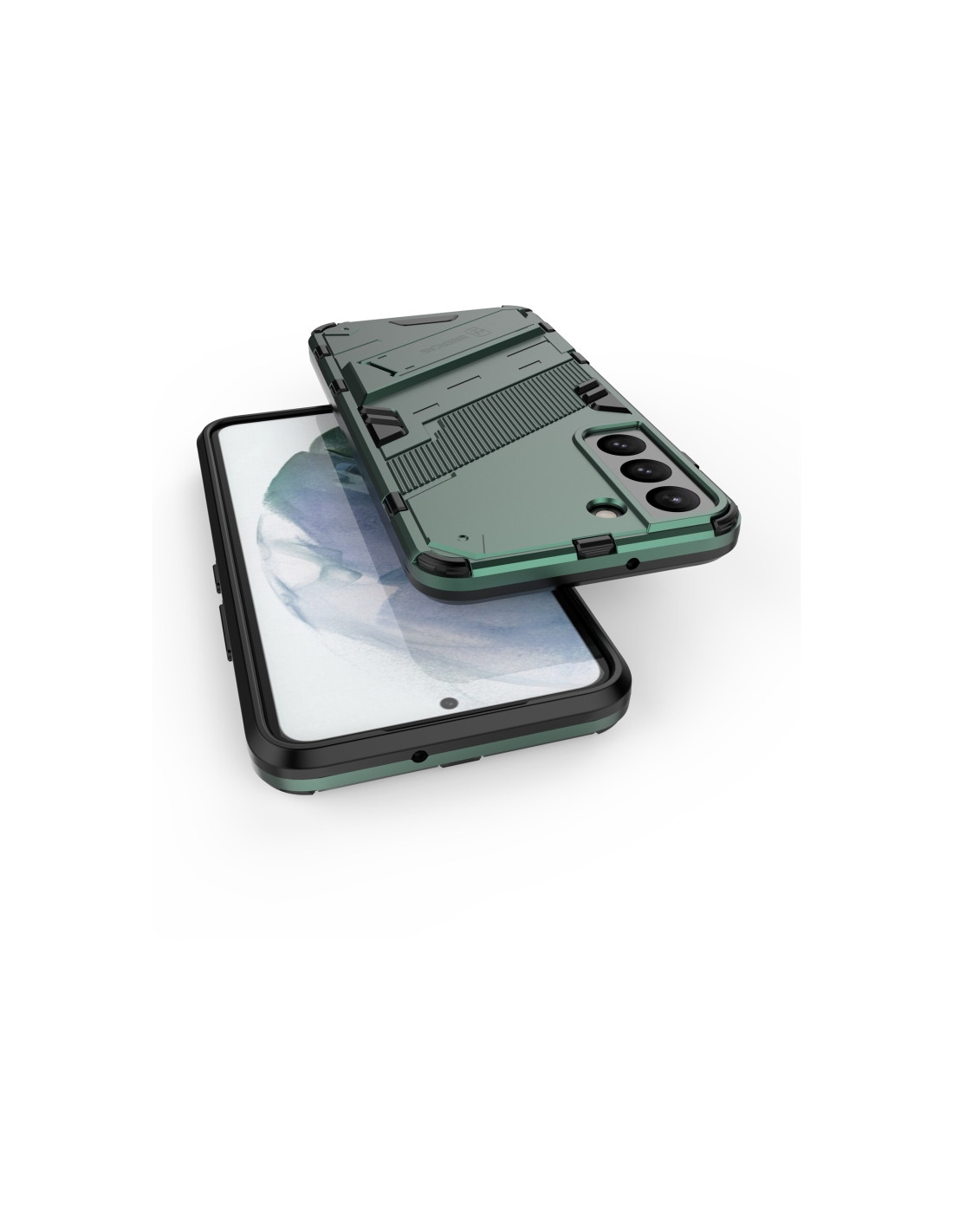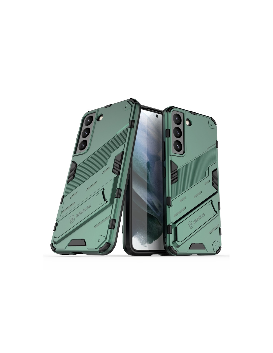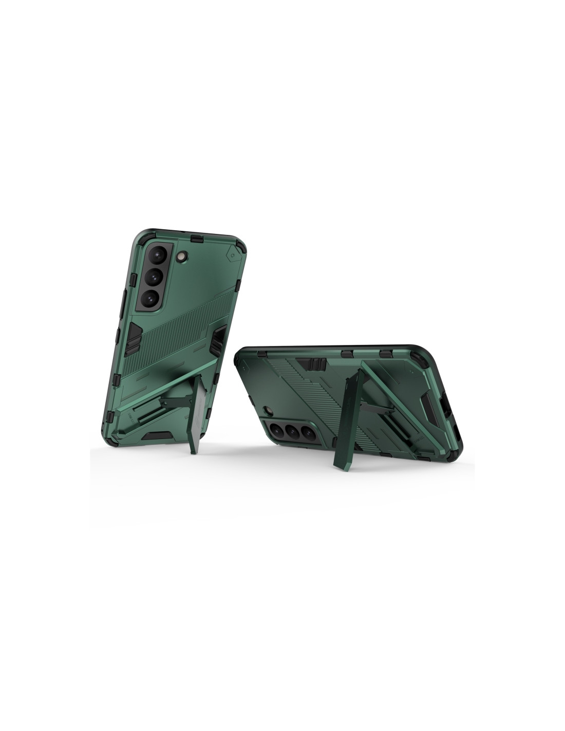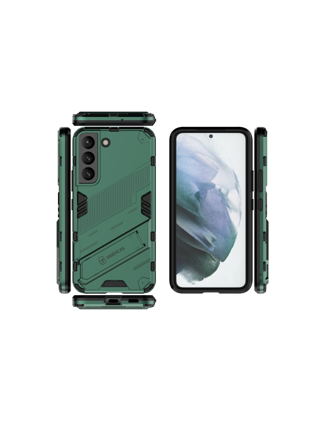 Cover antiurto Galaxy S22 5G in TPU + PC con design mimetico verde militare. Protezione robusta con supporto magnetico.