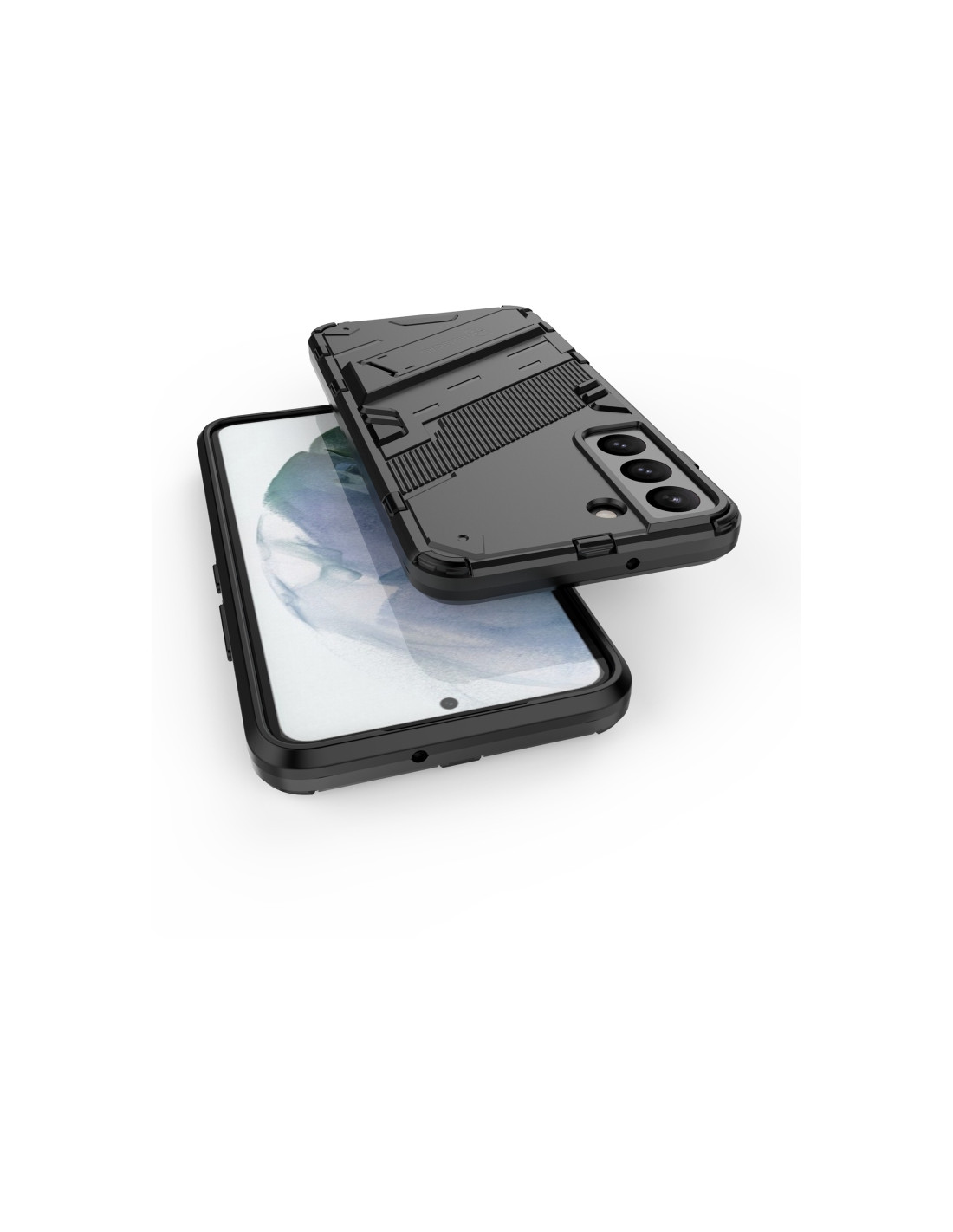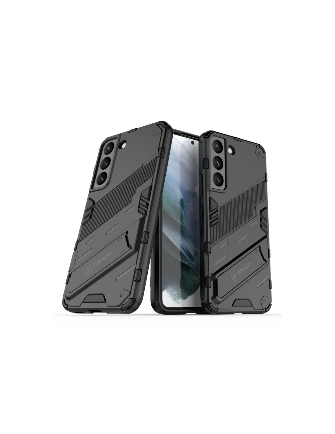 Cover antiurto Galaxy S22 5G in TPU + PC con design mimetico verde militare. Protezione robusta con supporto magnetico.