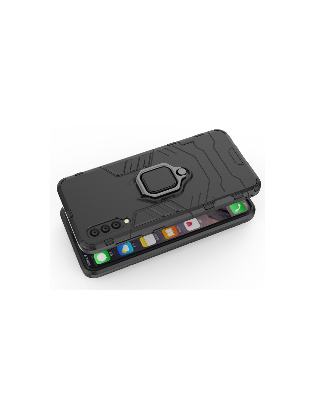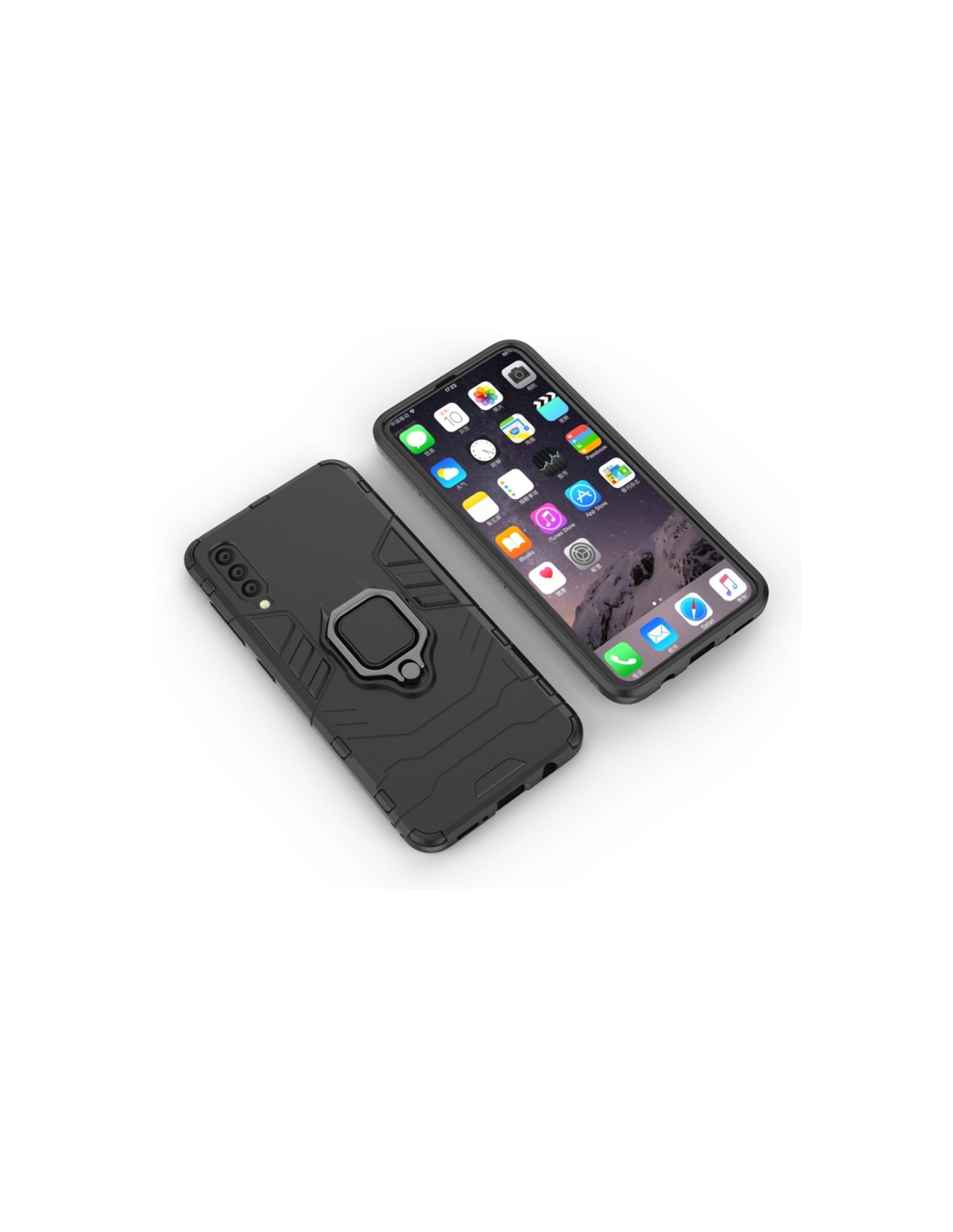 Cover antiurto Galaxy A50 in PC + TPU con anello magnetico. Protezione totale e design elegante in nero.
