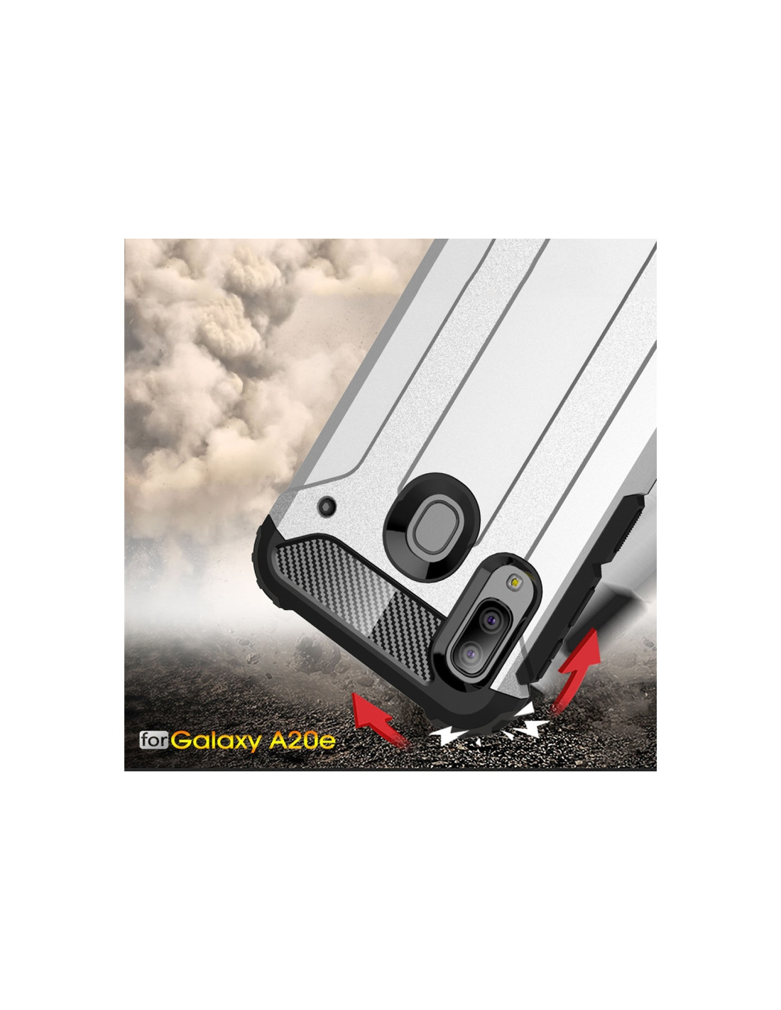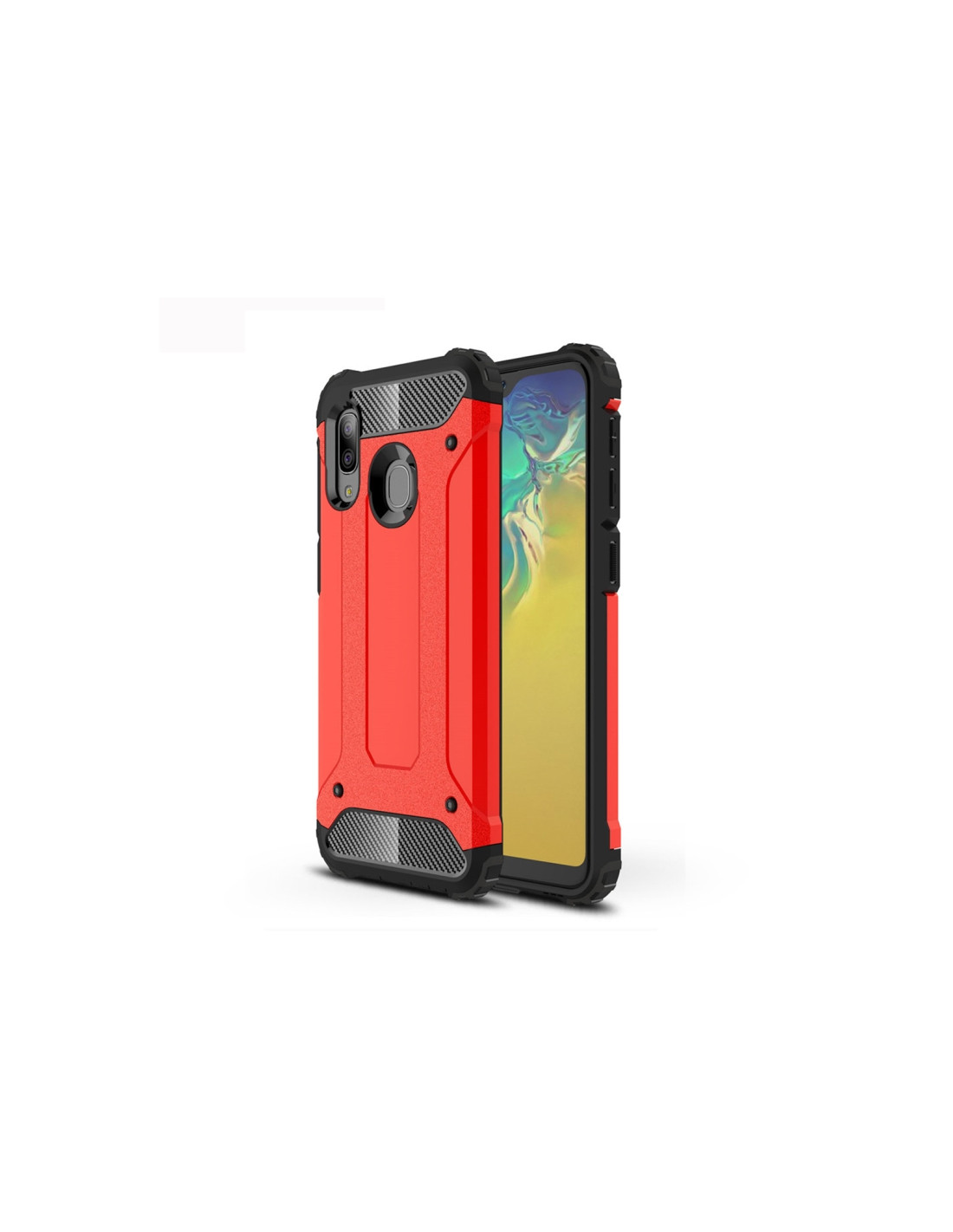 Cover Galaxy A20e in TPU + PC rosso. Protezione antiurto con design elegante e materiali di qualità.