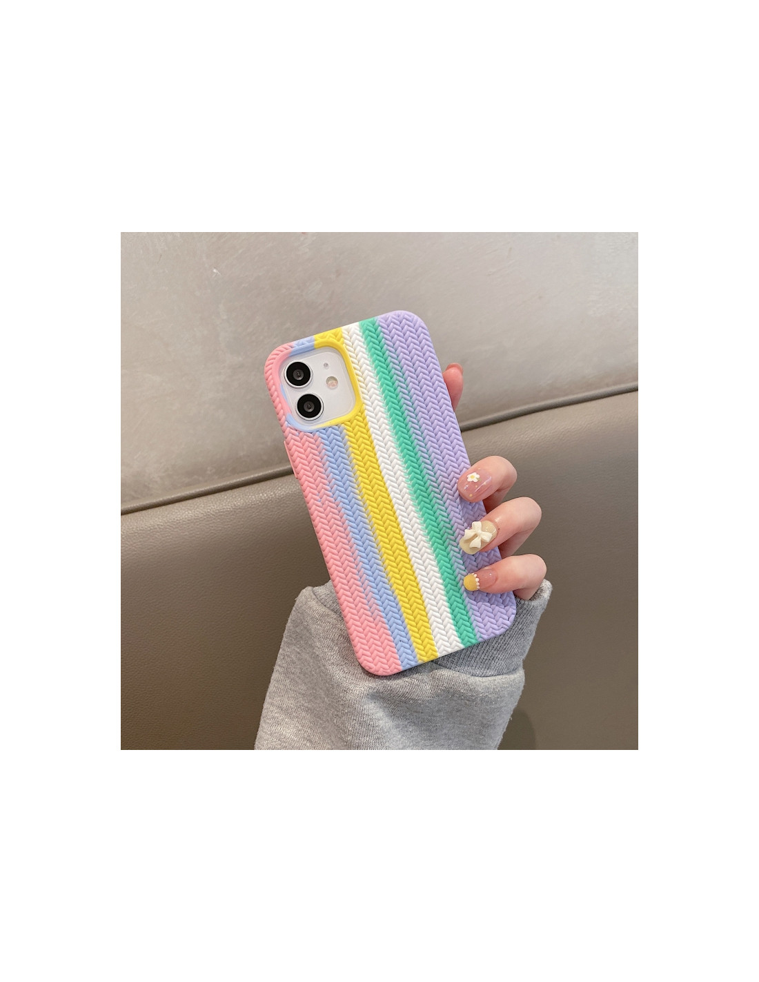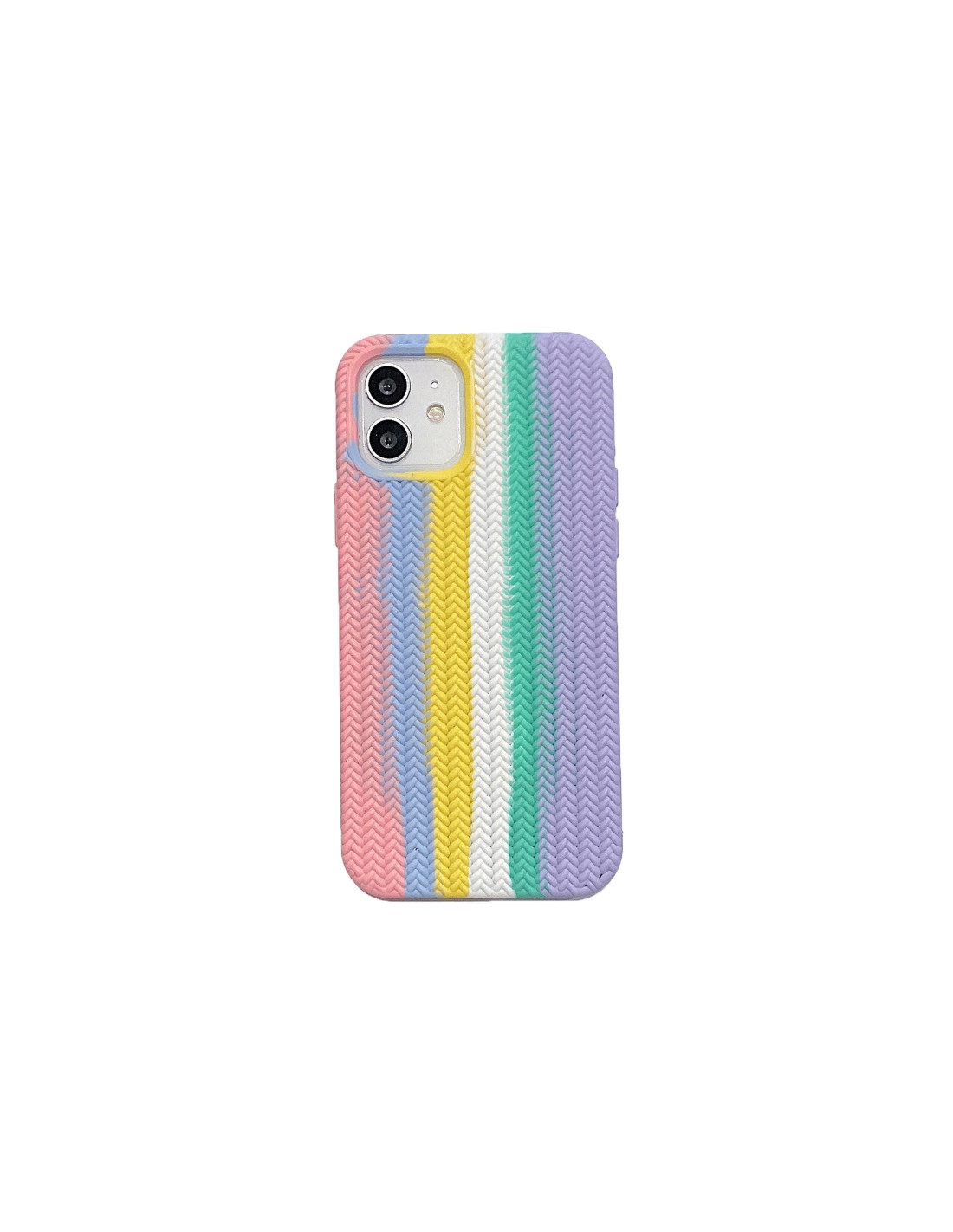 Cover iPhone 13 Silicone Blu Mare Texture Spina Rainbow Rosa