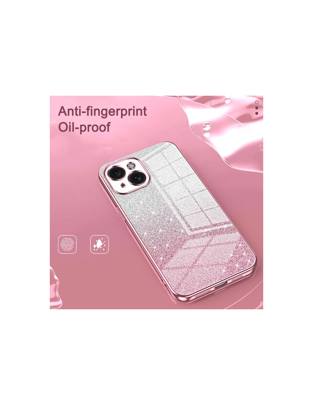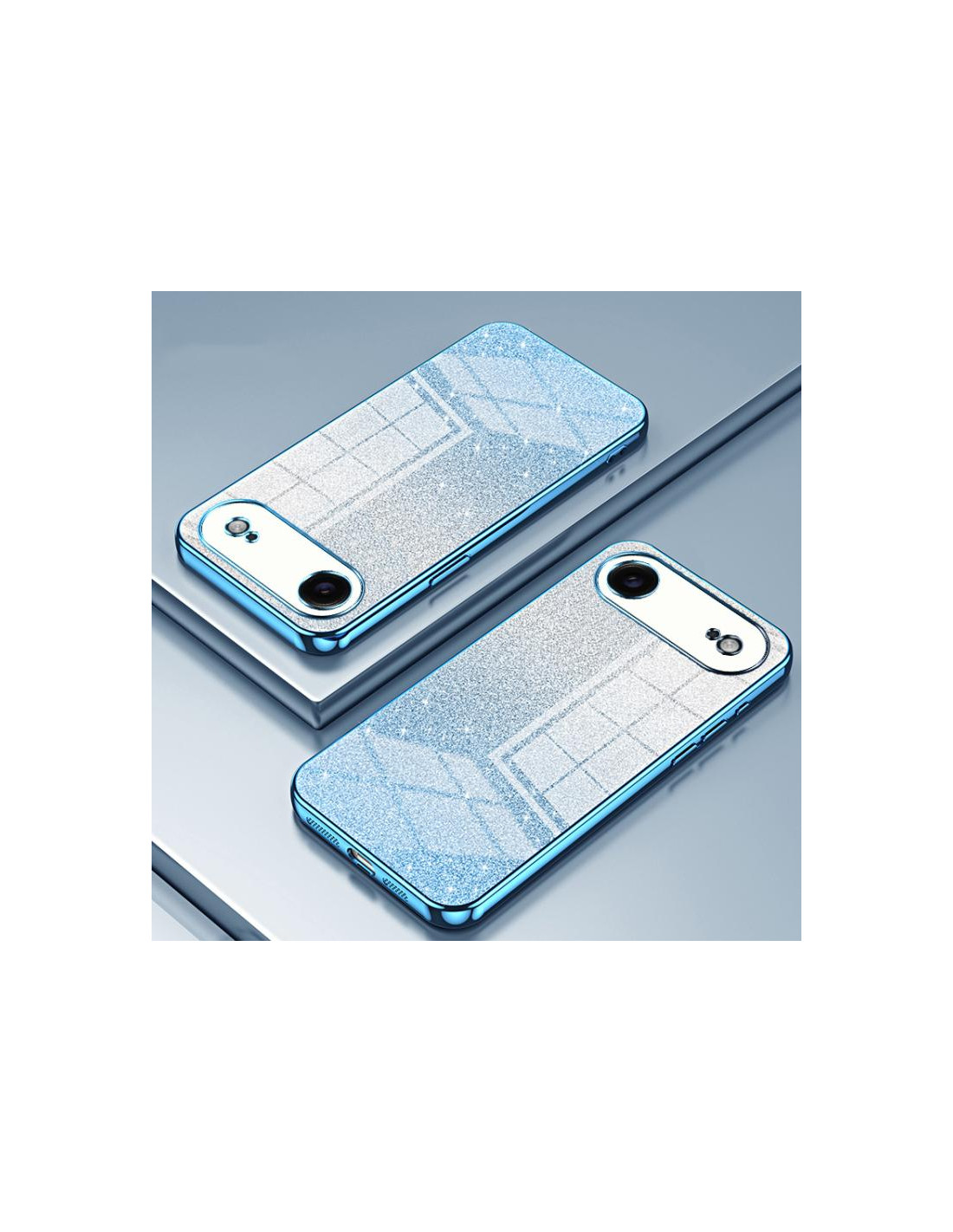 Cover iPhone Air con design glitterato sfumato e finitura elettroplatata. Protezione elegante e affascinante.