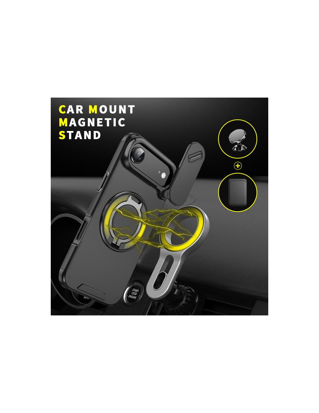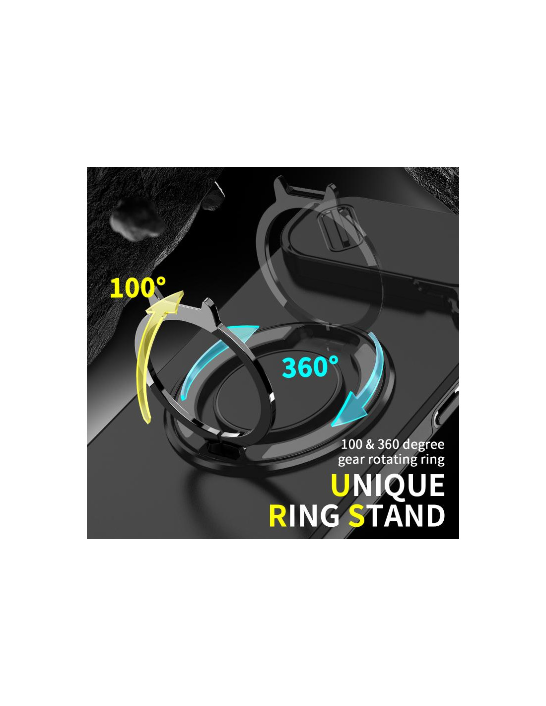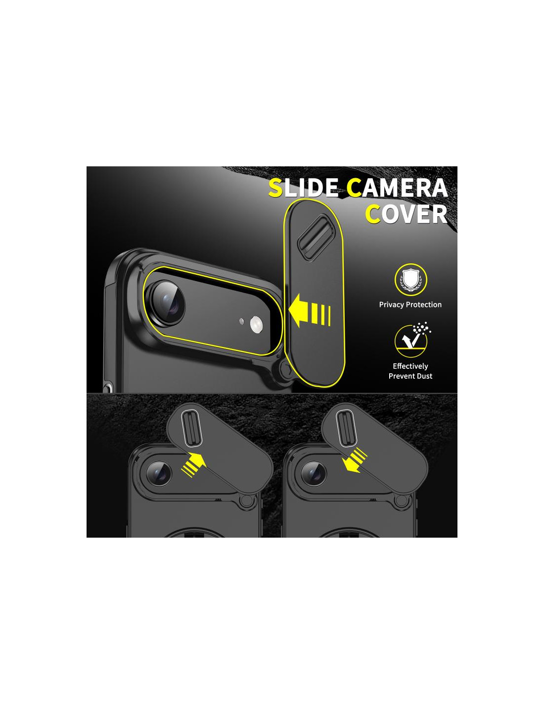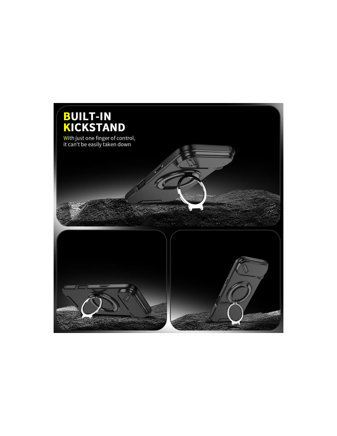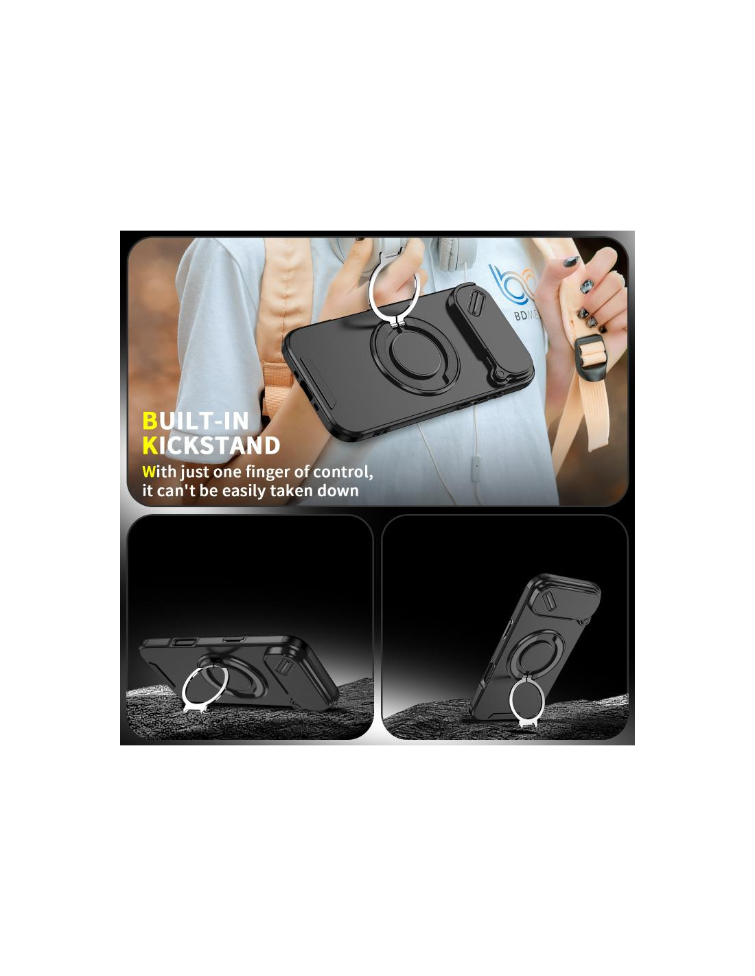 Cover iPhone Air con design mimetico, ring holder e protezione PC + TPU per una presa sicura.