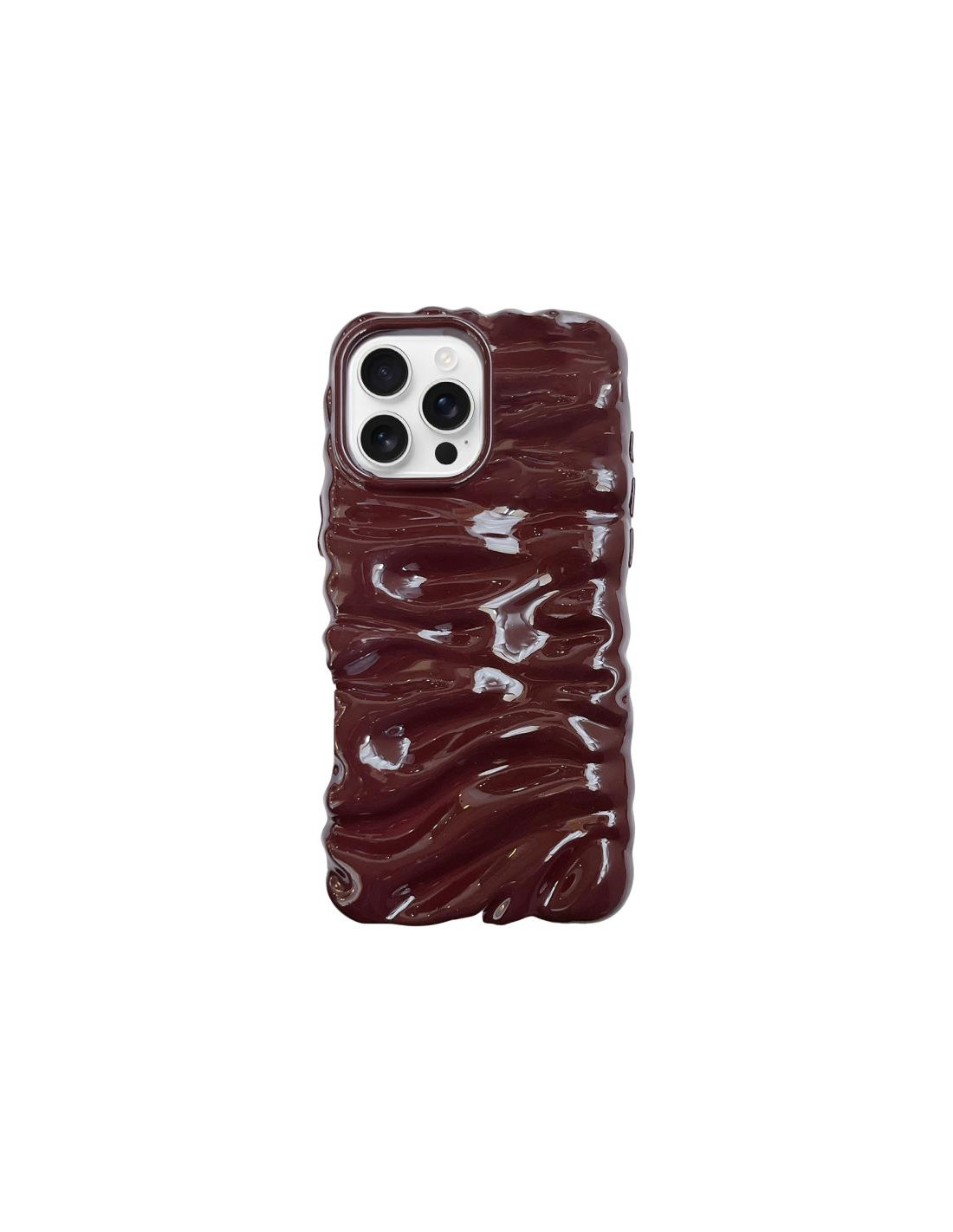 Cover iPhone 16 Pro in TPU con texture cream e finiture electroplating. Protezione completa in colore rosso vino elegante.