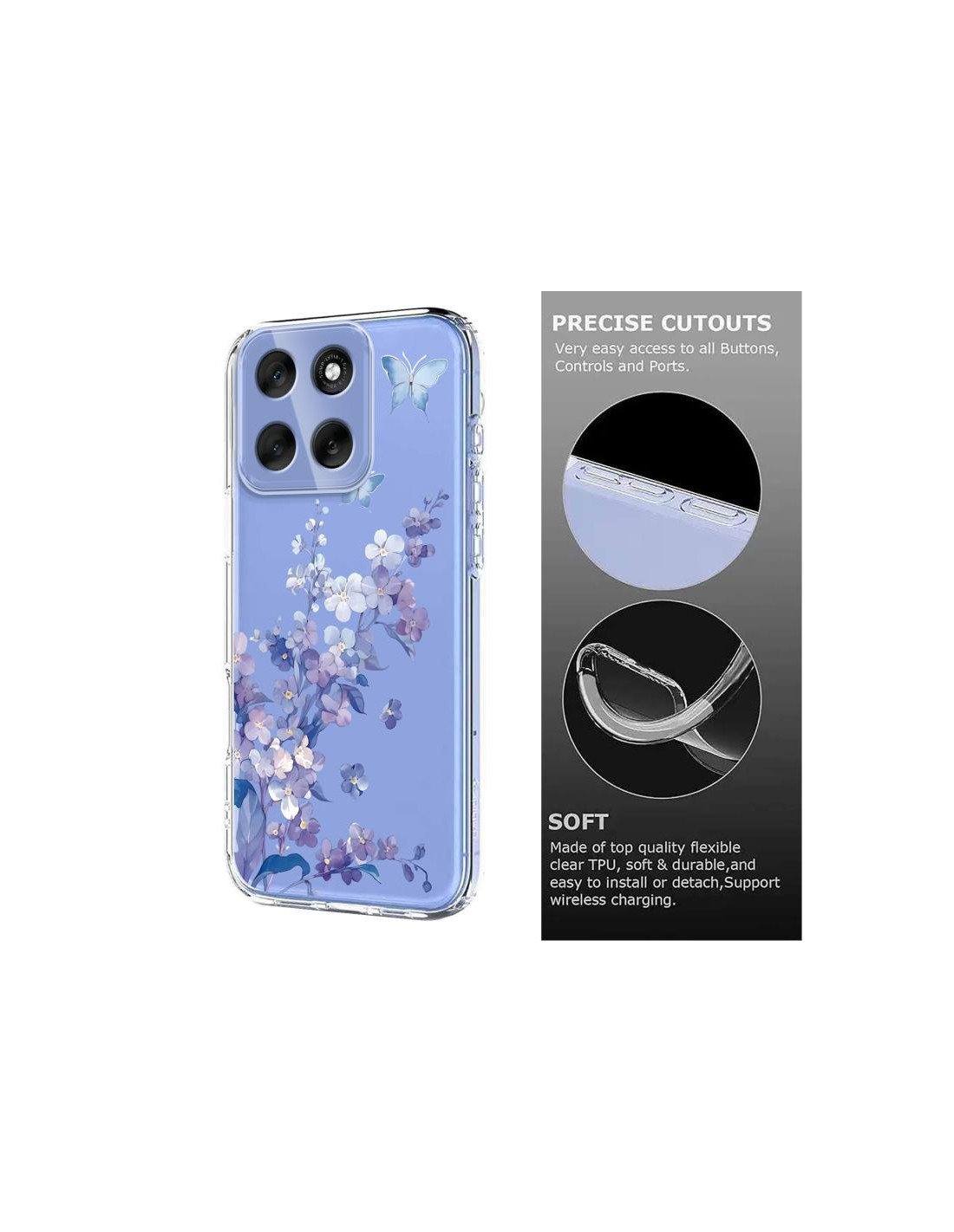 Proteggi il tuo Moto G86 5G con questa elegante cover in TPU con fantasia floreale viola. Il design sofisticato conferisce al tuo smartphone un aspetto raffinato e originale, perfetto per chi ama gli stili decorativi.