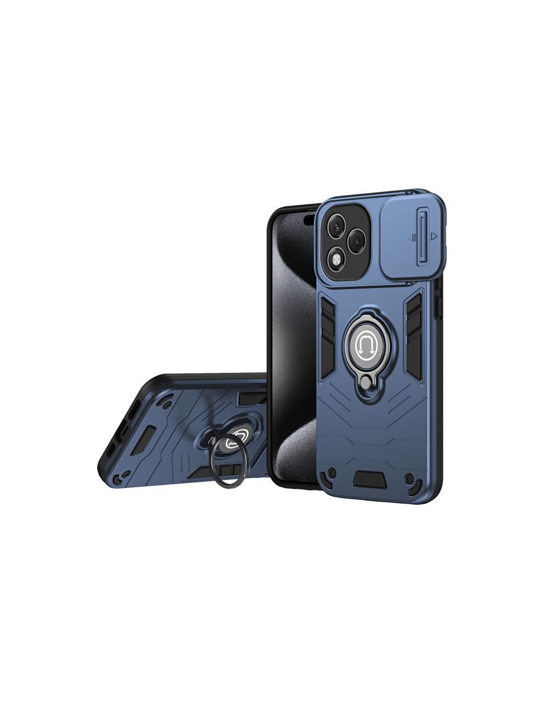 Cover Honor 400 Lite in TPU con design mimetico blu reale e anello magnetico. Protezione robusta e pratica.