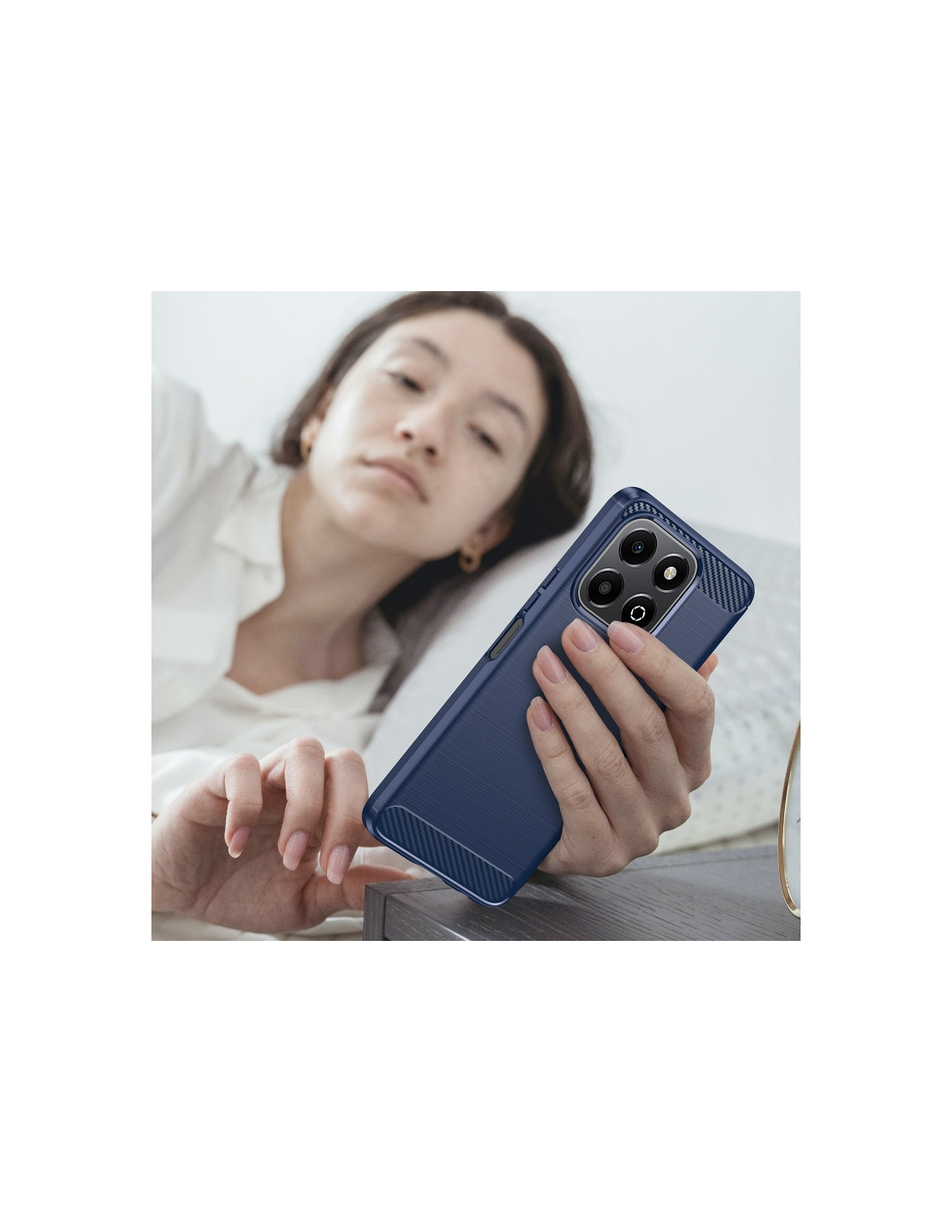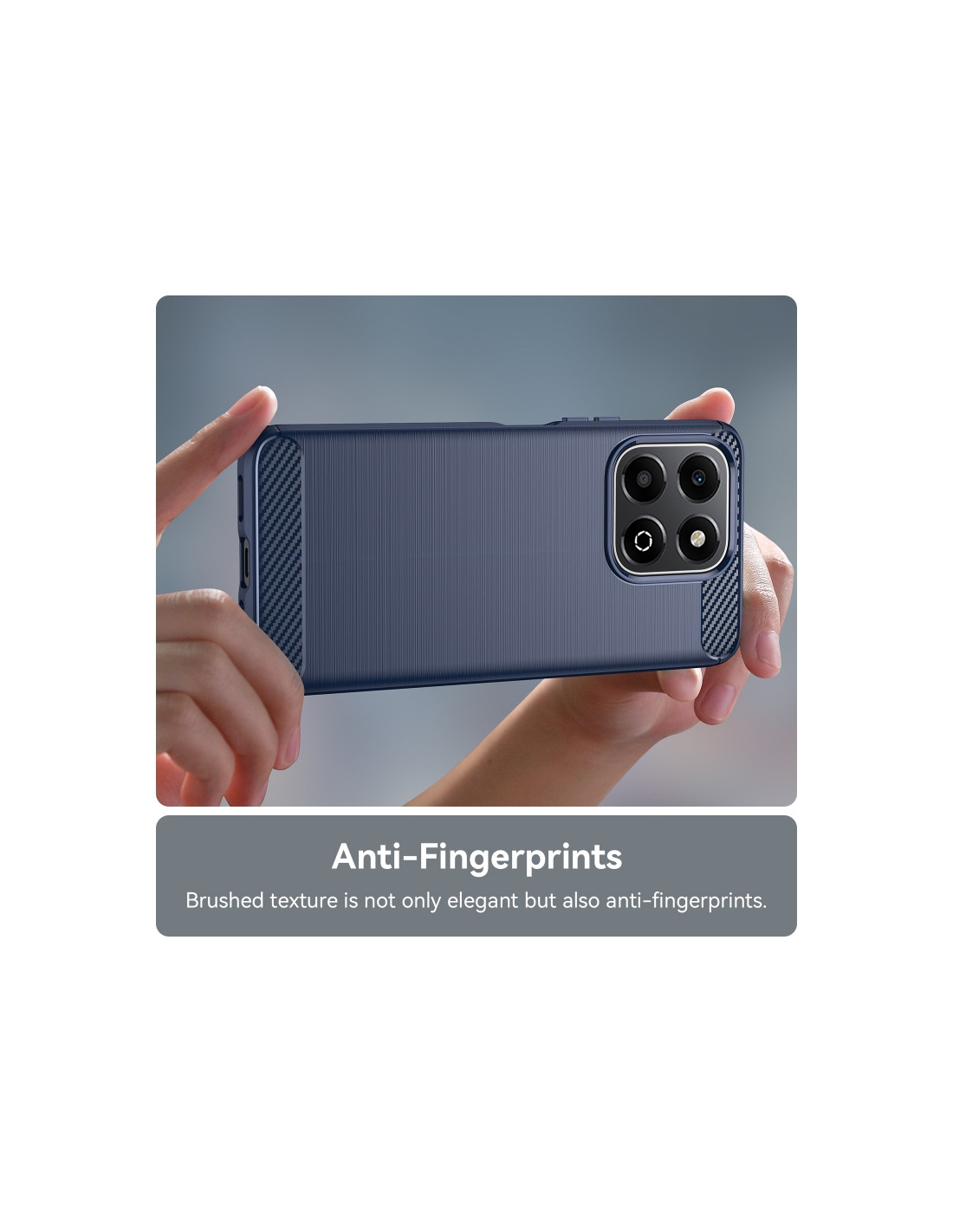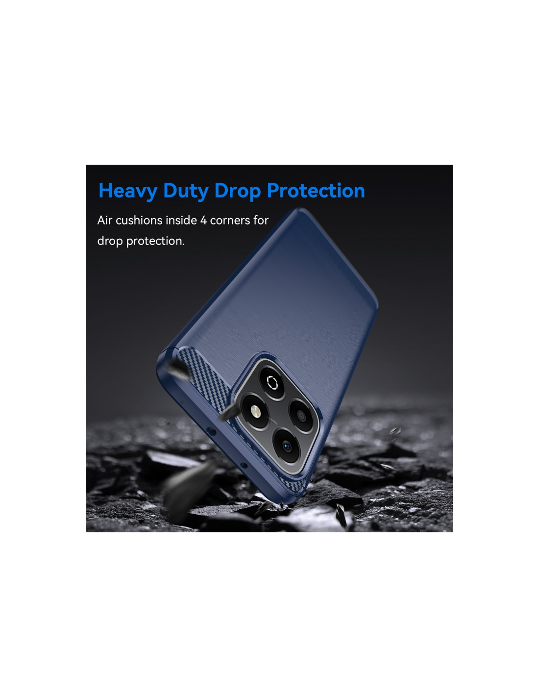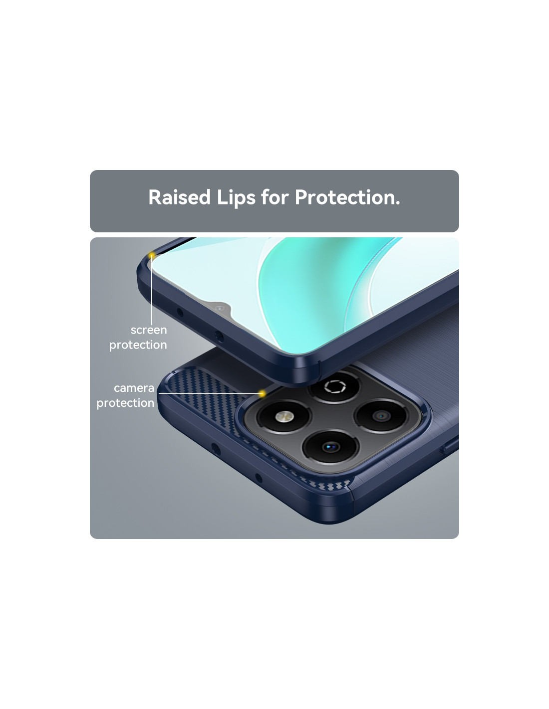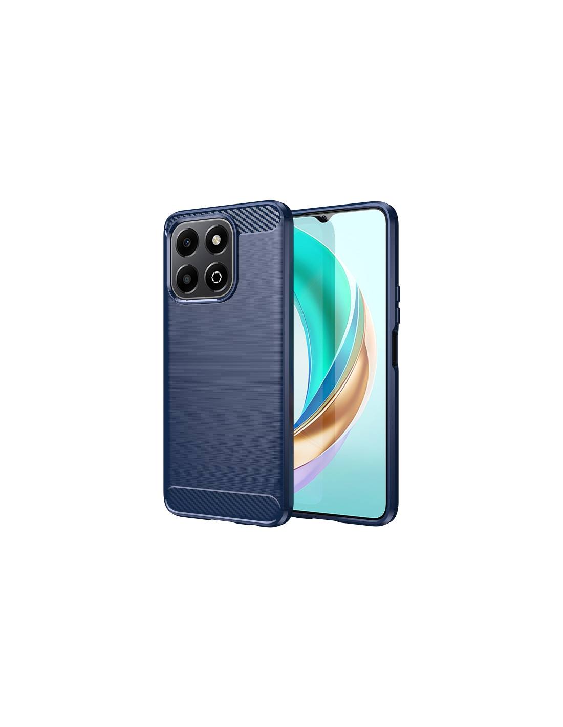 Cover Honor X6B in TPU con texture fibra di carbonio. Protezione robusta e design elegante in blu.