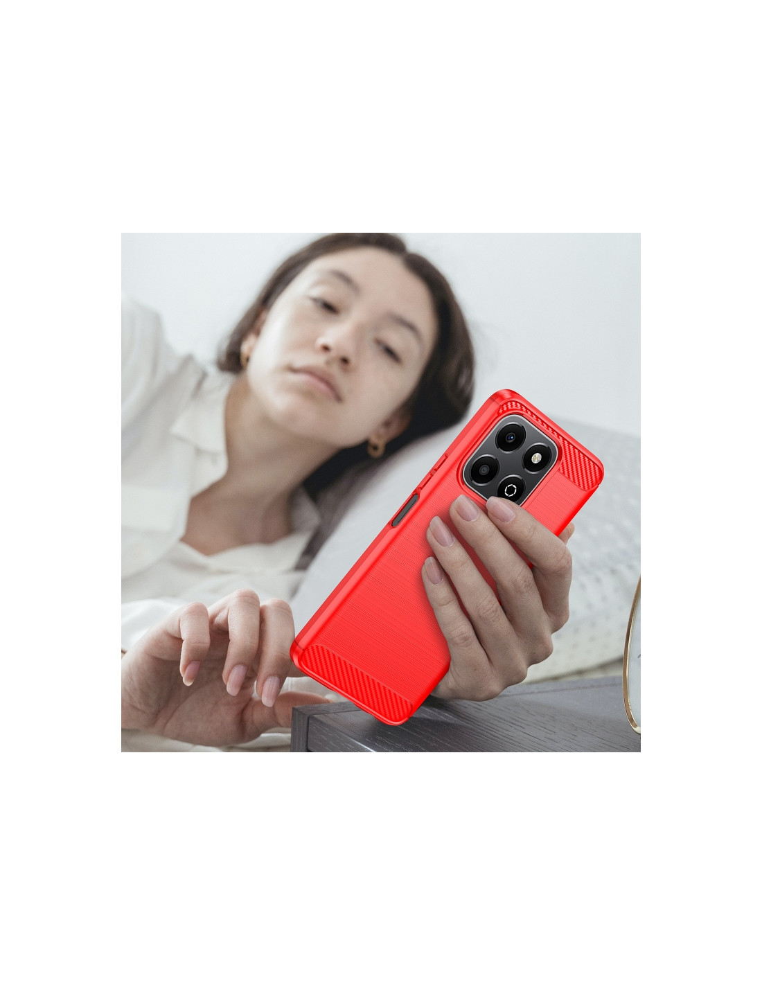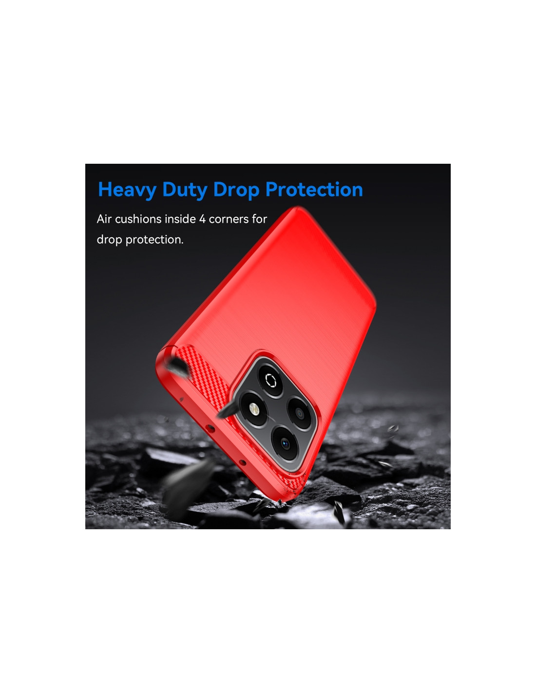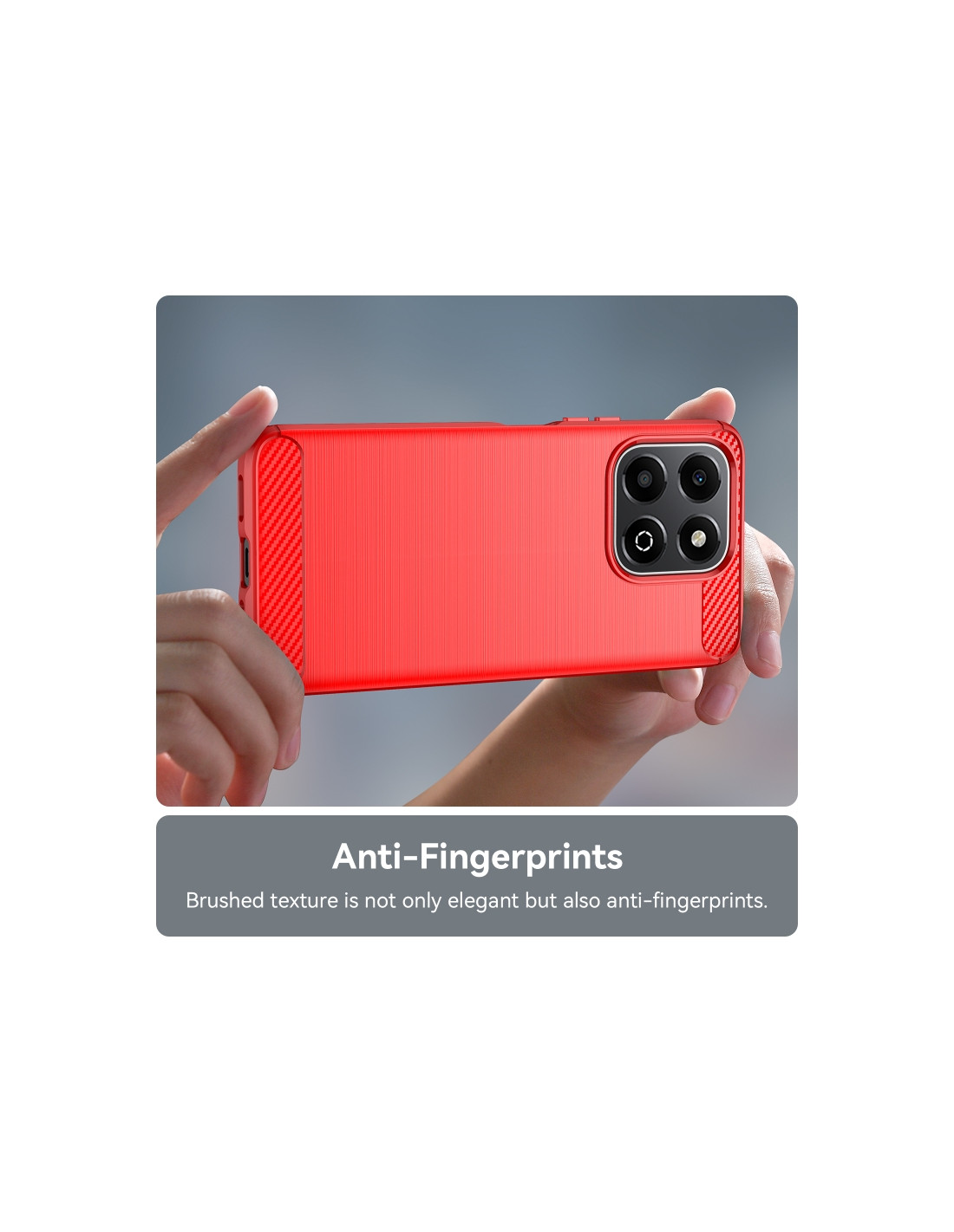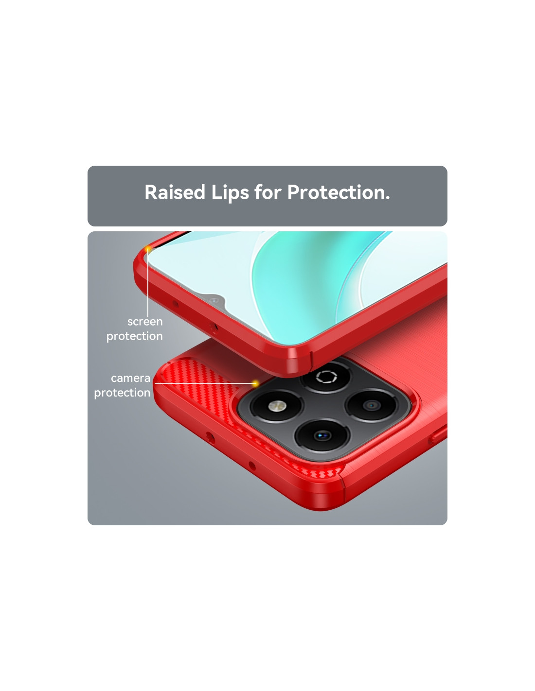 Cover Honor X6B in TPU con texture fibra di carbonio. Protezione robusta e design elegante in blu.