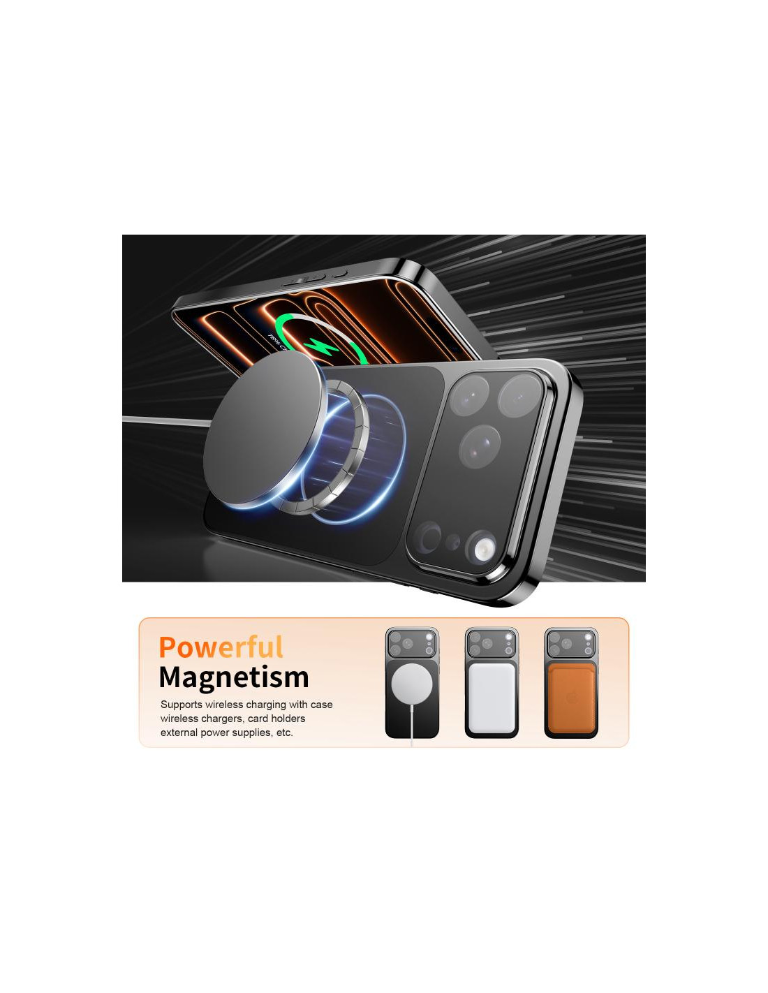 Cover iPhone 17 Pro Max con tecnologia MagSafe per ricarica wireless e accessori magnetici. Design nero elegante.