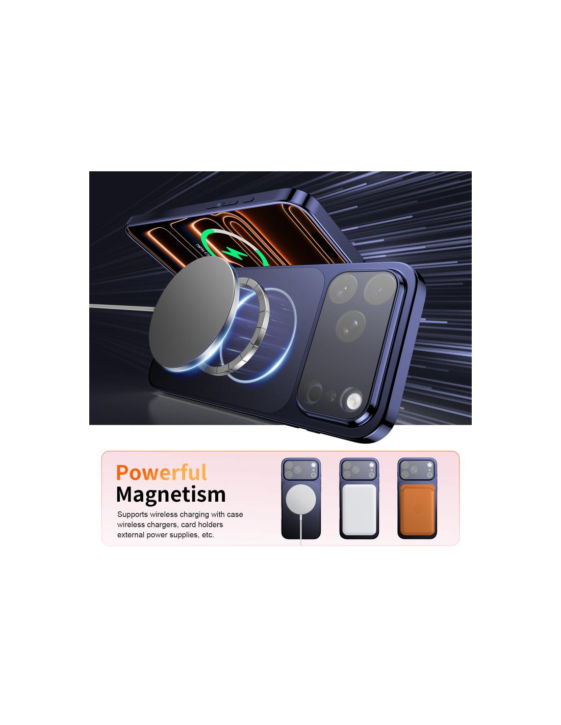 Cover iPhone 17 Pro Max con tecnologia MagSafe per ricarica wireless e accessori magnetici. Design nero elegante.