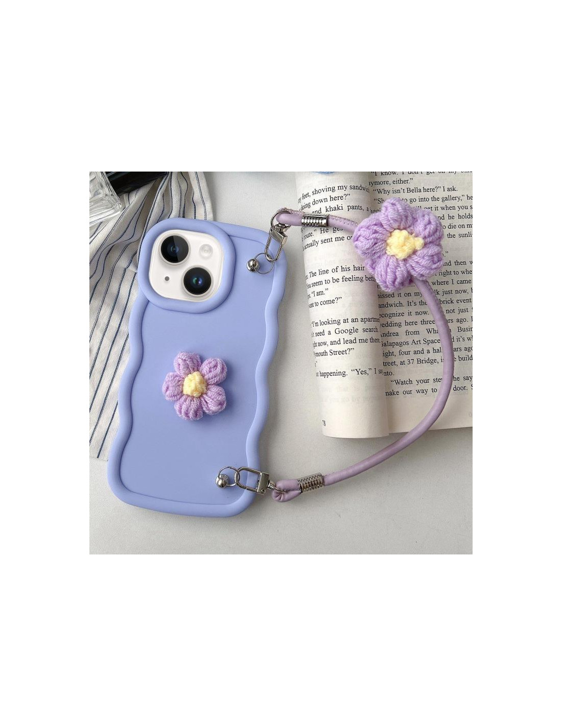 Cover TPU floreale con cordino per iPhone 14. Protezione elegante e pratica con design ondulato rosa.