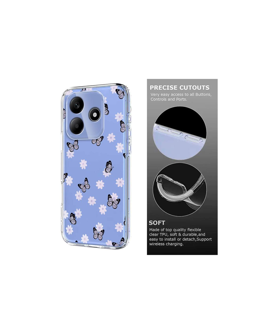 Proteggi il tuo Redmi Note 14 4G con questa elegante cover in TPU che combina stile e funzionalità. Il design floreale con farfalla rende ogni giorno speciale, trasformando il tuo smartphone in un accessorio unico e raffinato.