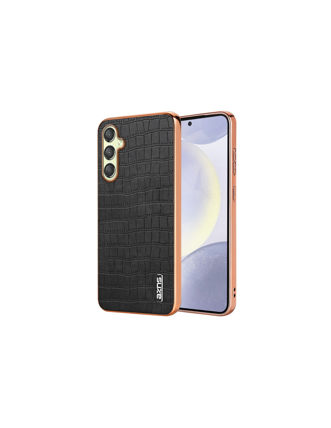 Cover Galaxy A15 in TPU con texture coccodrillo e frame cromato. Protezione completa e design elegante.