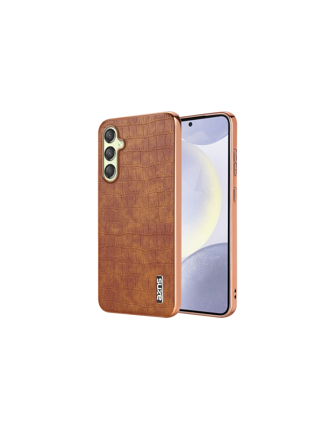 Cover Galaxy A15 in TPU con texture coccodrillo e frame cromato. Protezione completa e design elegante.