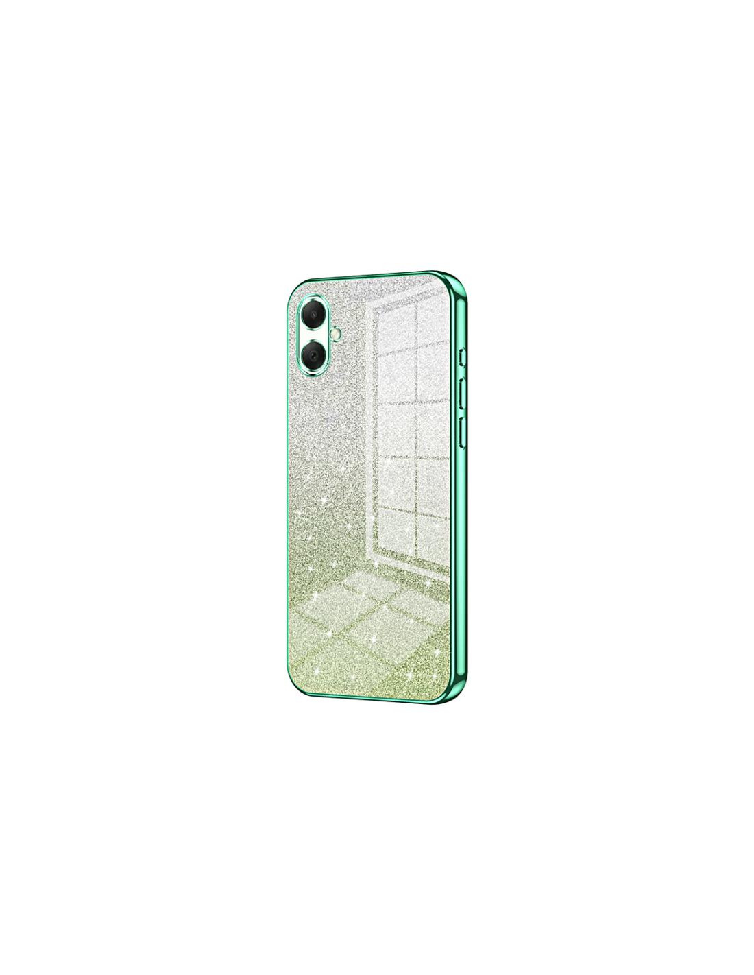 Cover Galaxy A07 in TPU galvanizzato con design glitterato sfumato verde. Protezione elegante e resistente.