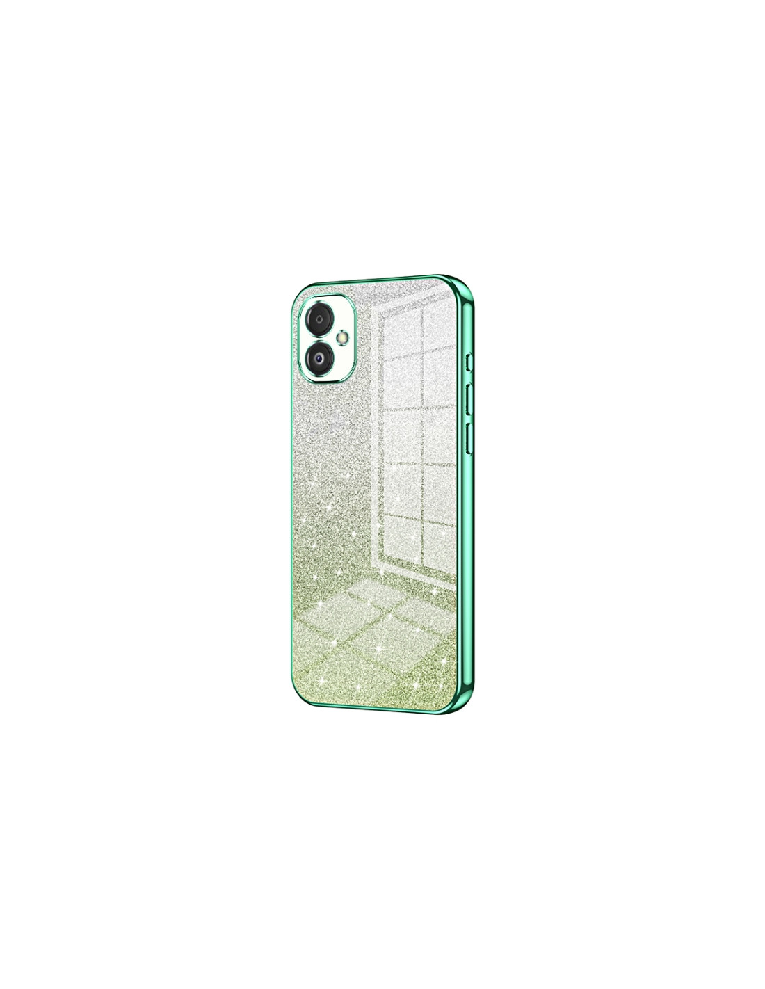 Cover Galaxy F14 5G in TPU galvanizzato con design sfumato glitterato verde. Protezione elegante e durevole.