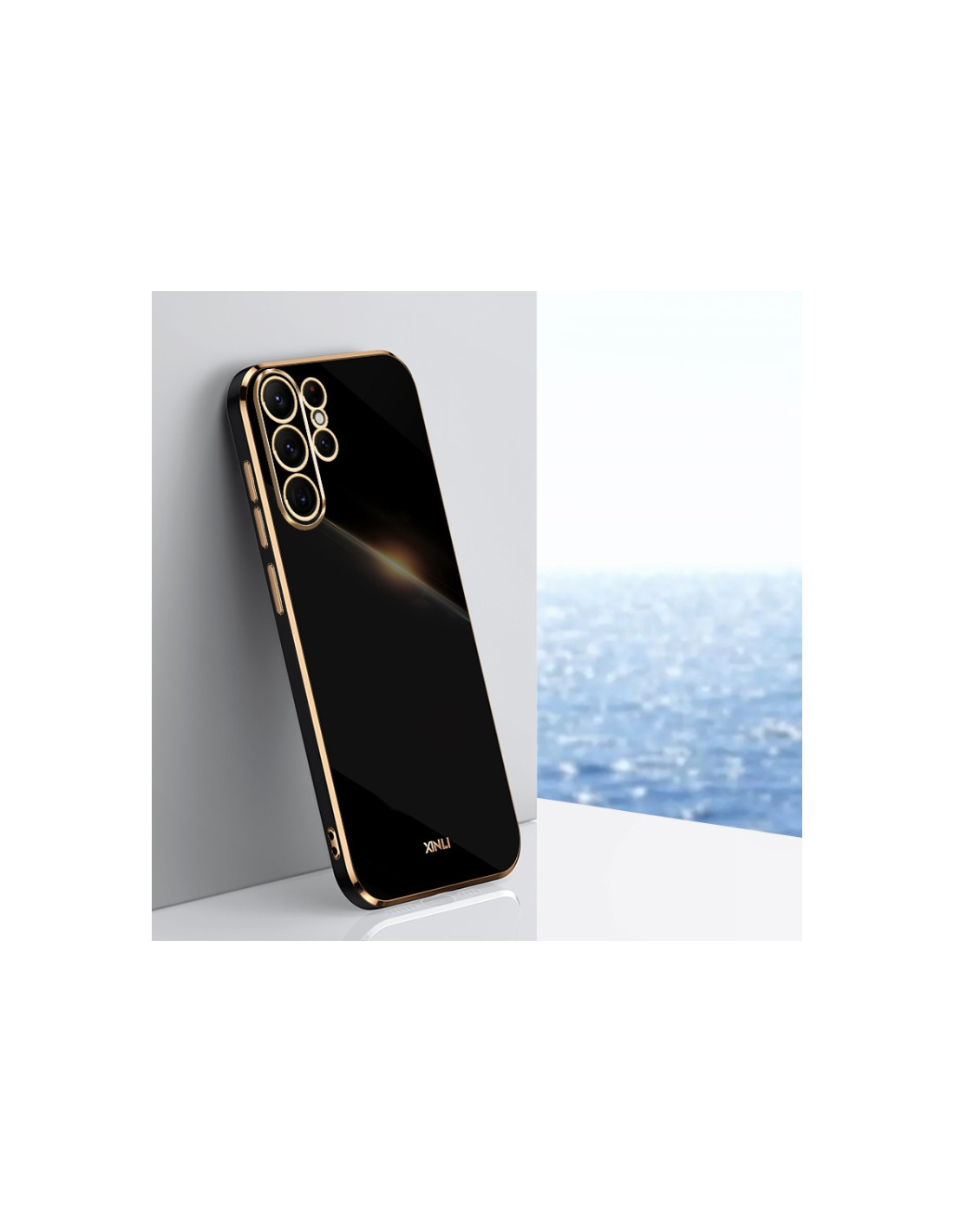 Cover protettiva Galaxy S24 Ultra in TPU e flanella. Design elegante nero con protezione antiurto.