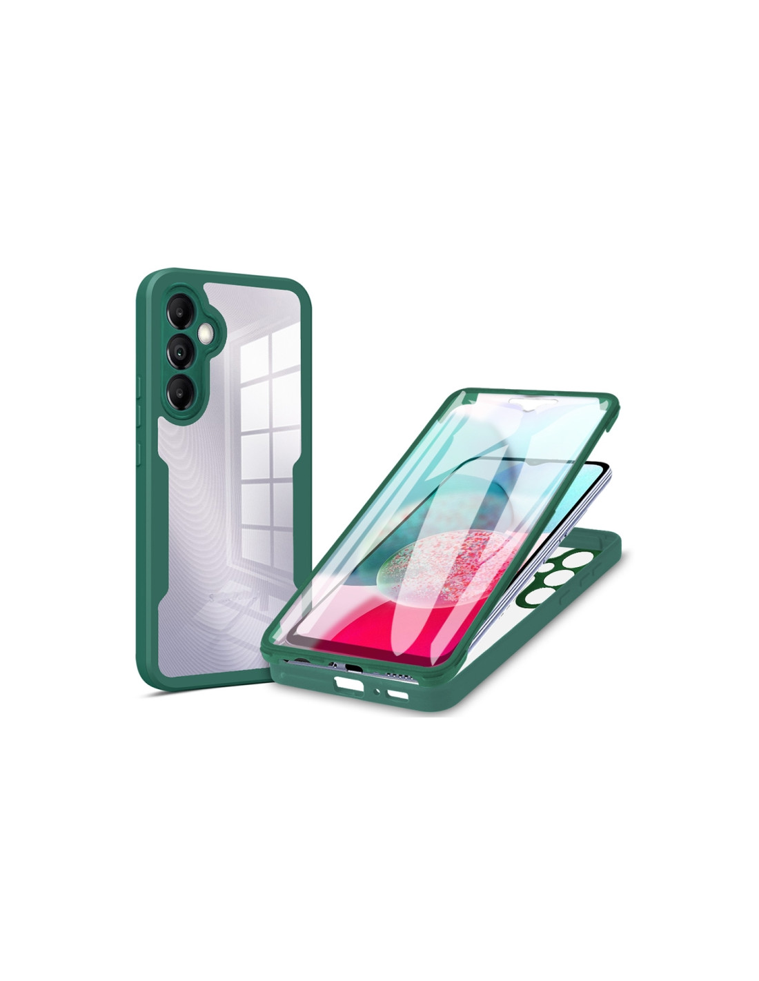 Cover Galaxy A34 5G in acrilico e TPU con protezione totale 360 gradi. Design verde elegante e resistente.