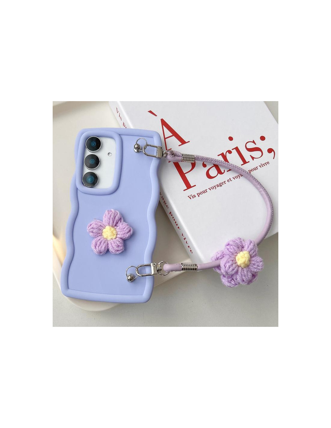 Cover TPU Galaxy A35 5G con design floreale ondulato e laccio pratico. Protezione morbida e stile delicato in rosa.