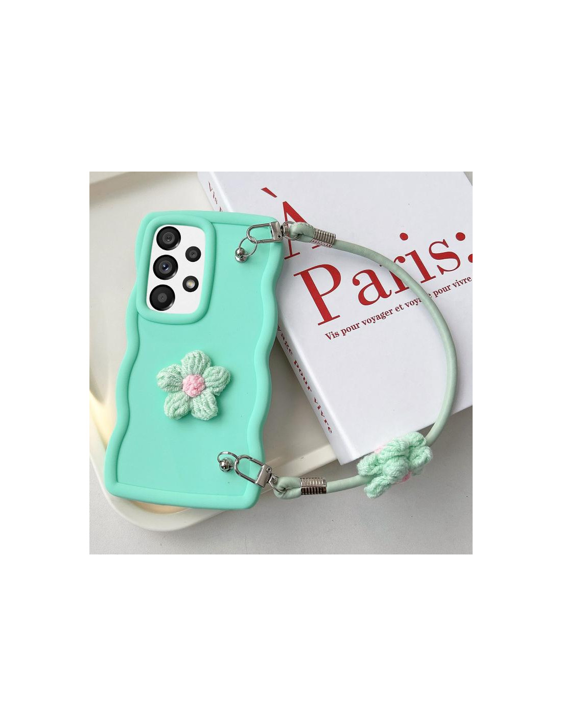 Cover TPU per Galaxy A33 5G con design floreale ondulato rosa e cordino. Protezione elegante e pratica.