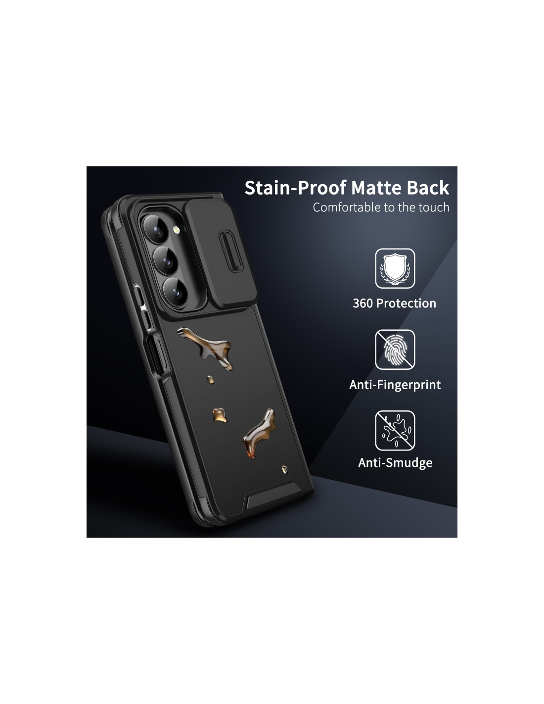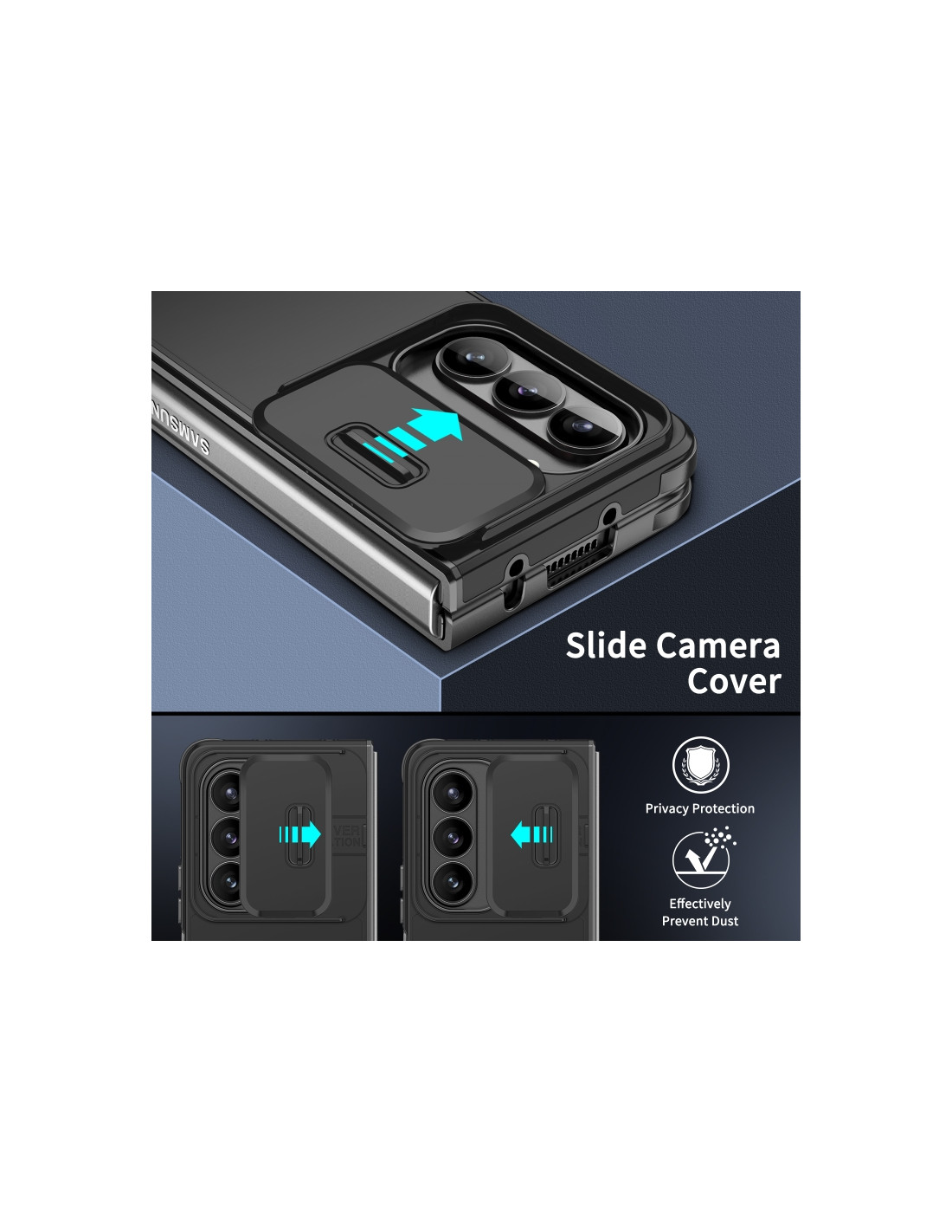Cover protettiva per Galaxy Z Fold5 in TPU e PC con design Camshield. Protezione totale e stile moderno.