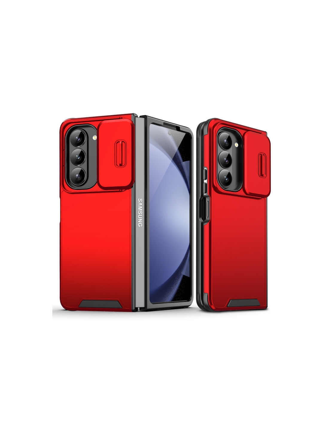 Cover protettiva per Galaxy Z Fold5 in TPU e PC con design Camshield. Protezione totale e stile moderno.