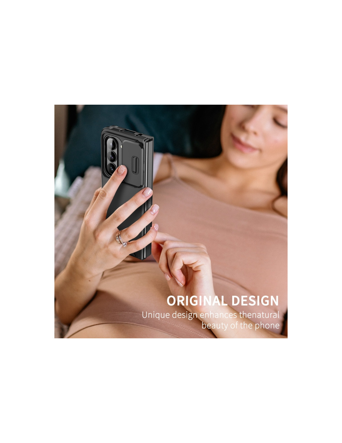 La cover Camshield per Galaxy Z Fold5 combina protezione e design innovativo. Realizzata in TPU e PC, offre una difesa completa contro urti e graffi mantenendo l'eleganza del tuo smartphone pieghevole.