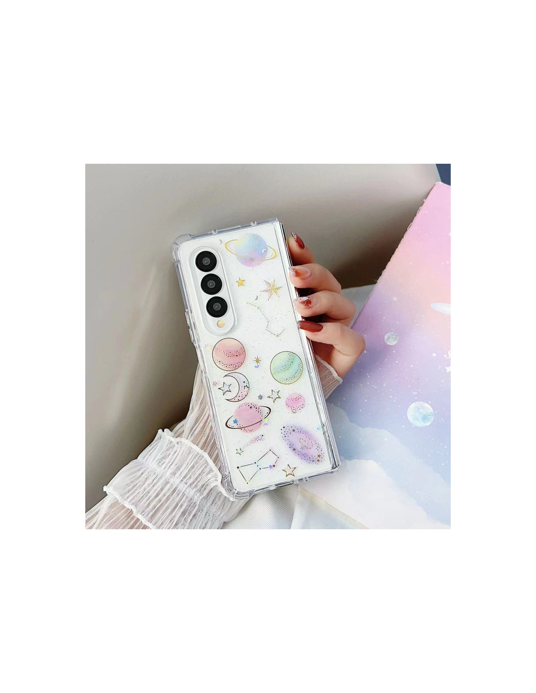 La cover Galaxy Z Fold4 in TPU trasparente con glitter stelle cosmiche è la scelta perfetta per chi desidera proteggere il proprio smartphone mantenendo visibile il design originale. Realizzata in materiale TPU di qualità, offre una protezione affidabile dagli urti e dalle cadute.