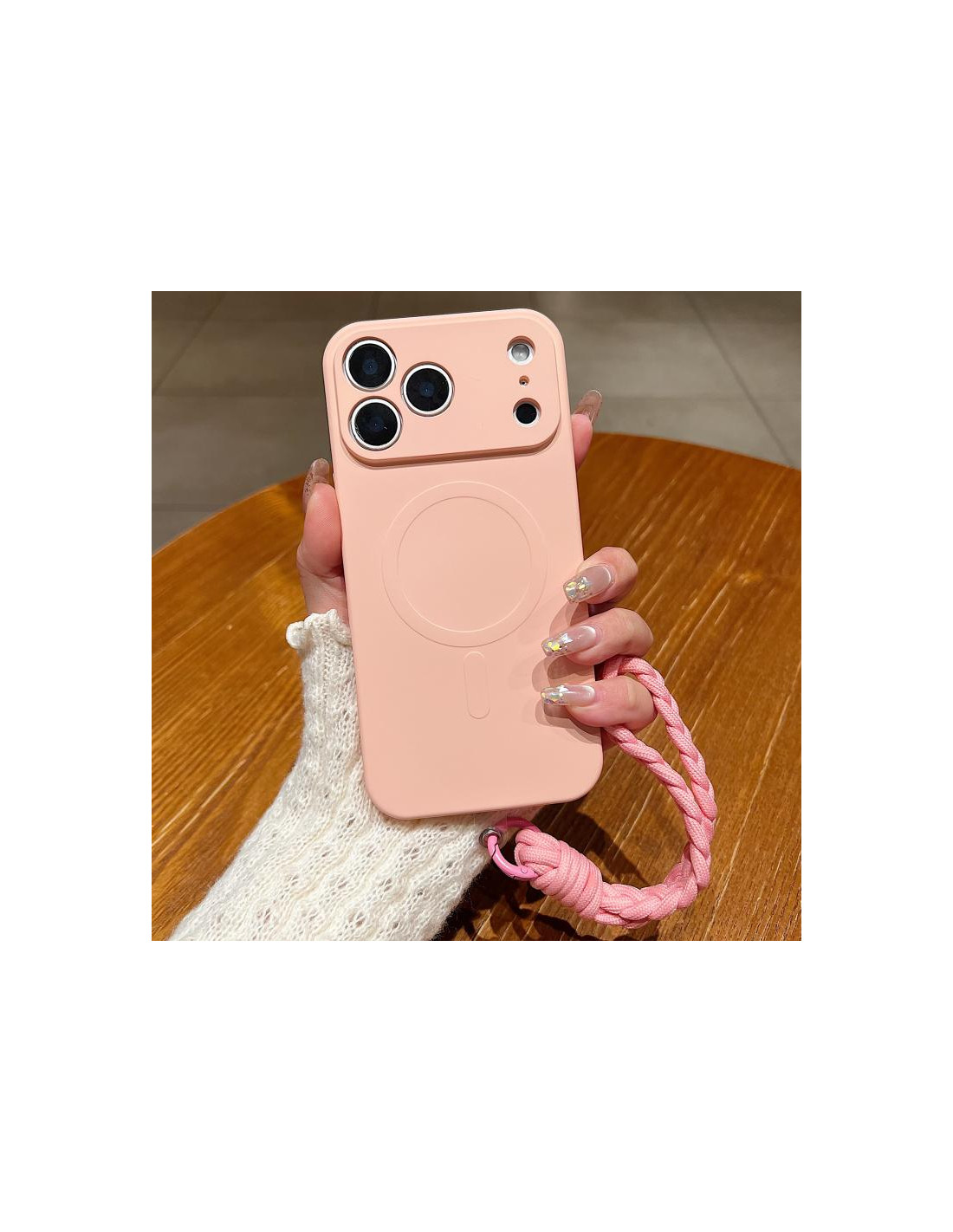 Cover iPhone 17 Pro Silicone Liquido Nero con Laccio Rosa