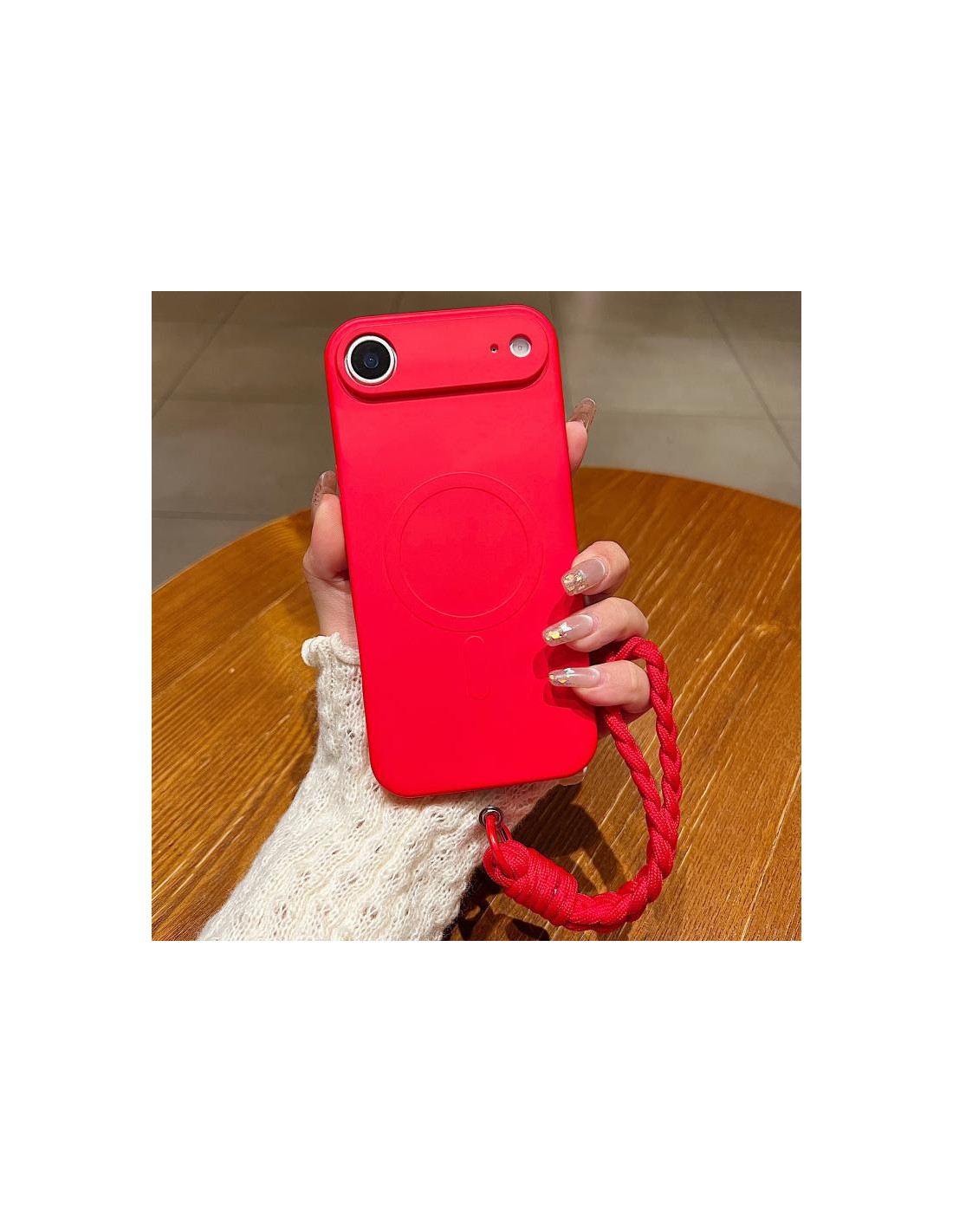 Cover iPhone Air in silicone liquido nero con cordino magnetico. Protezione morbida e pratica per il tuo smartphone.