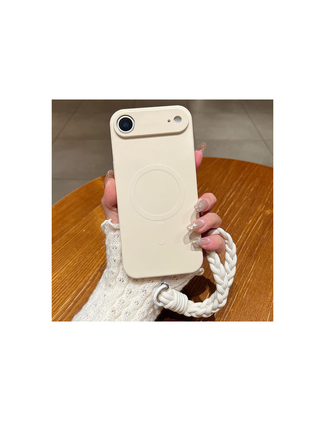 Cover iPhone Air in silicone liquido nero con cordino magnetico. Protezione morbida e pratica per il tuo smartphone.