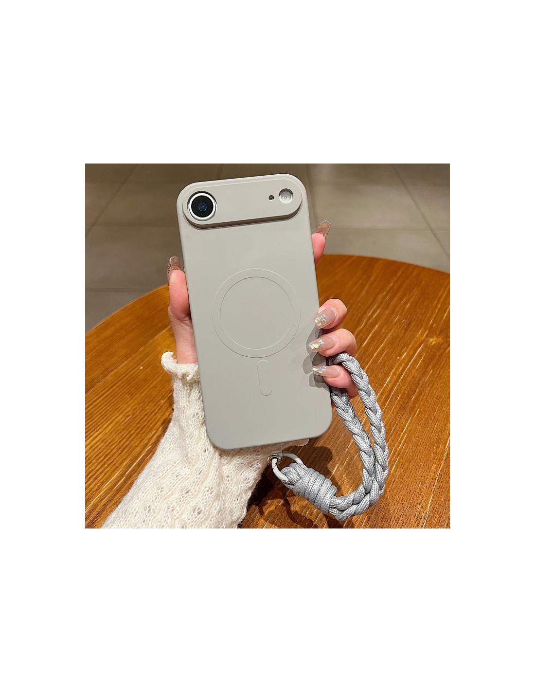 Cover iPhone Air in silicone liquido nero con cordino magnetico. Protezione morbida e pratica per il tuo smartphone.