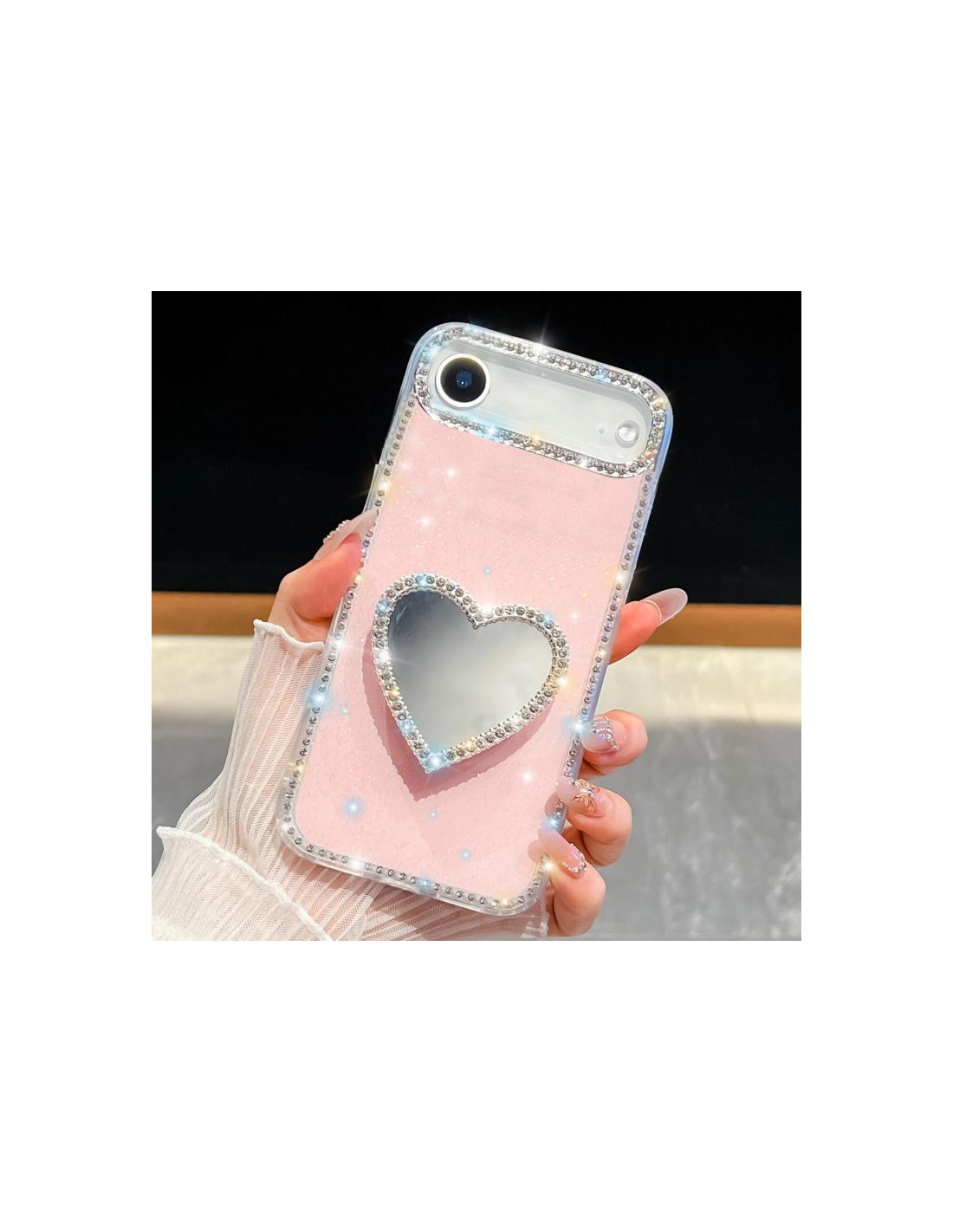 Cover iPhone Air con design cuore glitterato e specchio, perfetta per uno stile elegante e femminile in rosa chiaro.