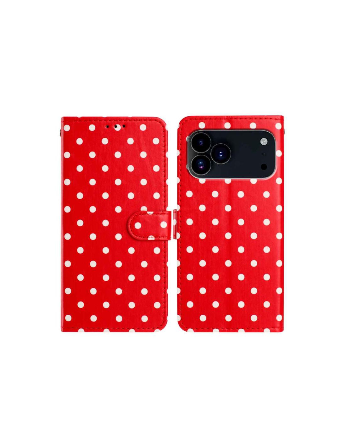 Cover iPhone 17 Pro Max in pelle vegana con motivo pois. Protezione elegante e sostenibile per il tuo smartphone.