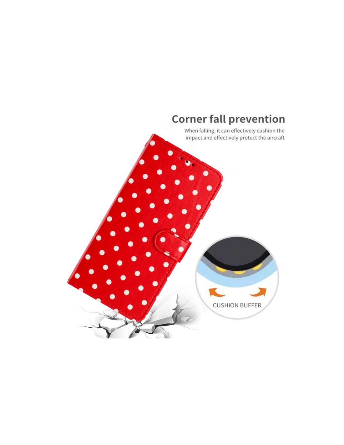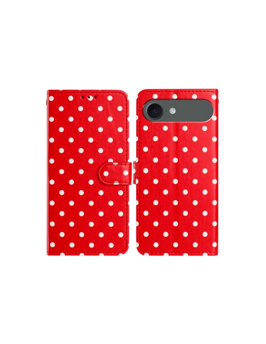 Cover iPhone Air in vegan leather rosso con fantasia piccoli pois. Protezione elegante e sostenibile per il tuo smartphone.