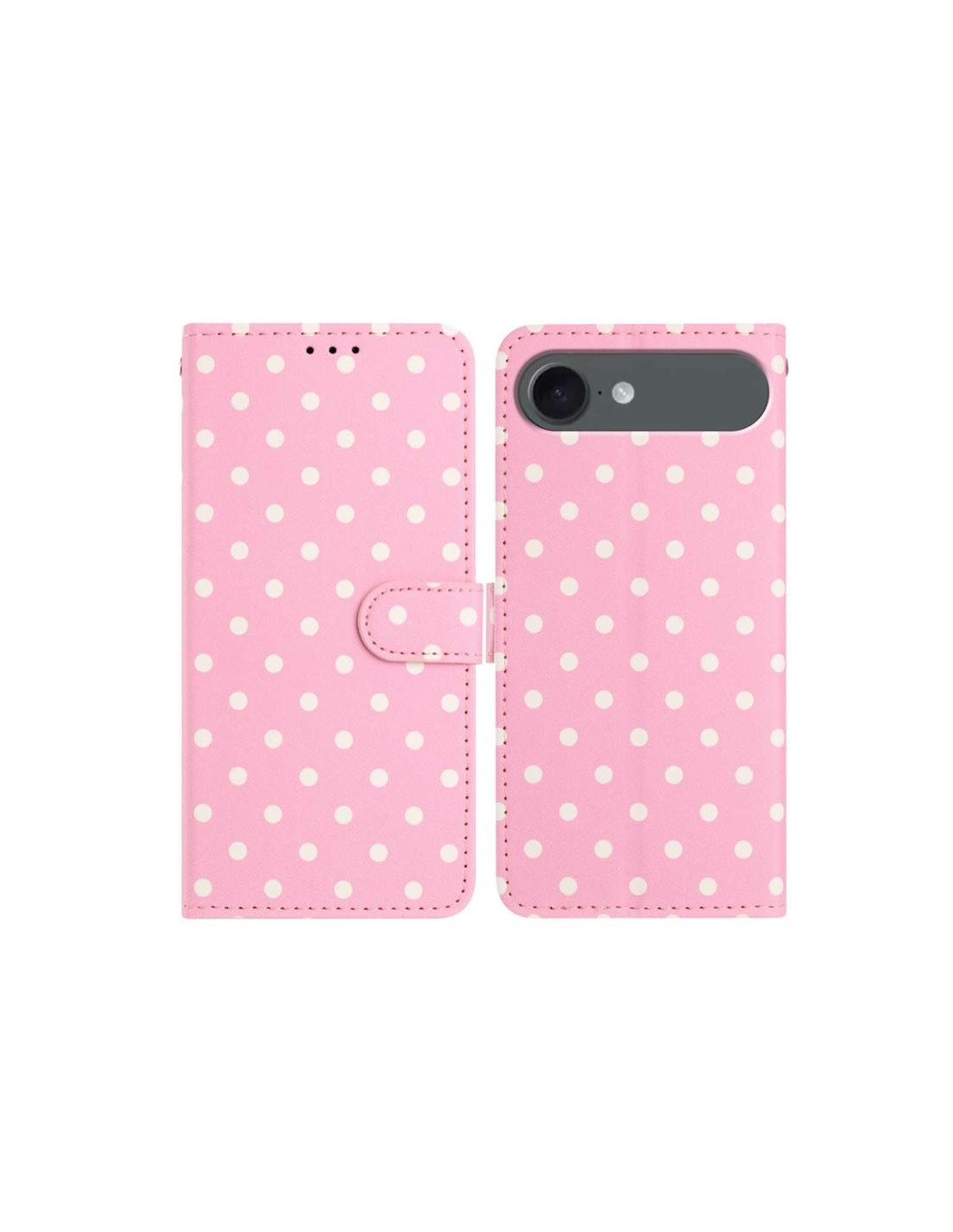 Cover iPhone Air in vegan leather rosso con fantasia piccoli pois. Protezione elegante e sostenibile per il tuo smartphone.