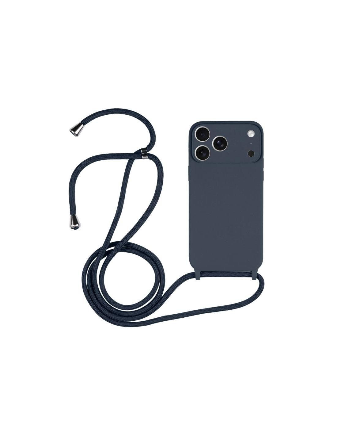 Cover iPhone 17 Pro Silicone Liquido Nero con Laccio Midnight Blu