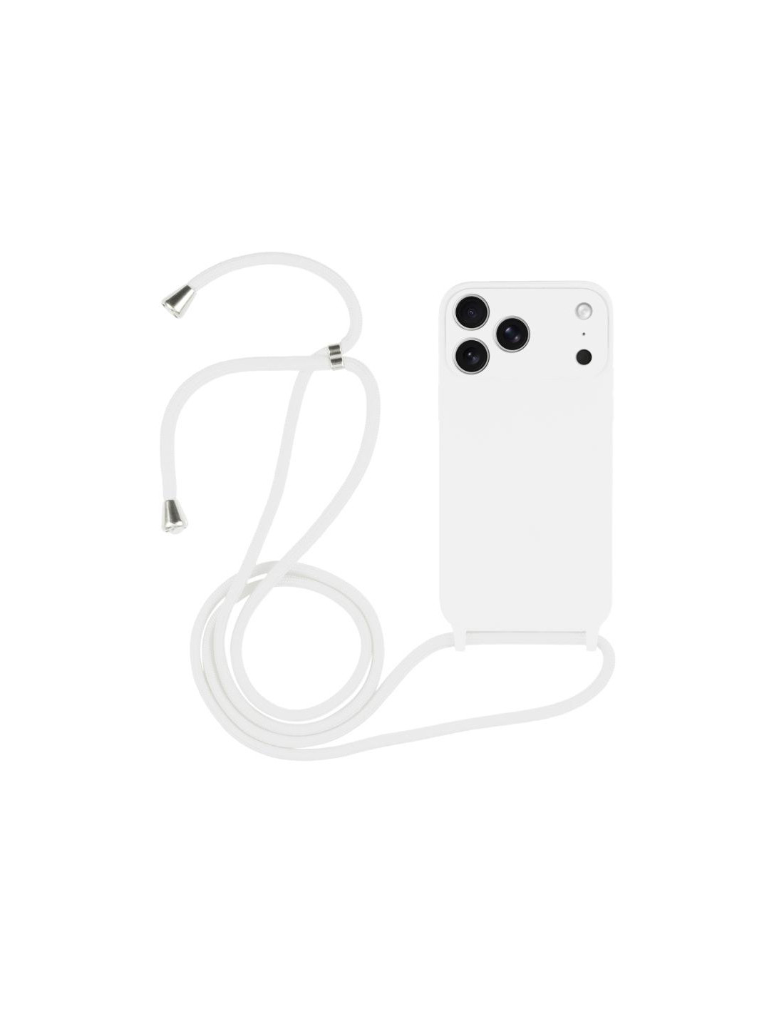Cover iPhone 17 Pro Max in silicone liquido nero con laccio. Protezione morbida e elegante per il tuo smartphone.