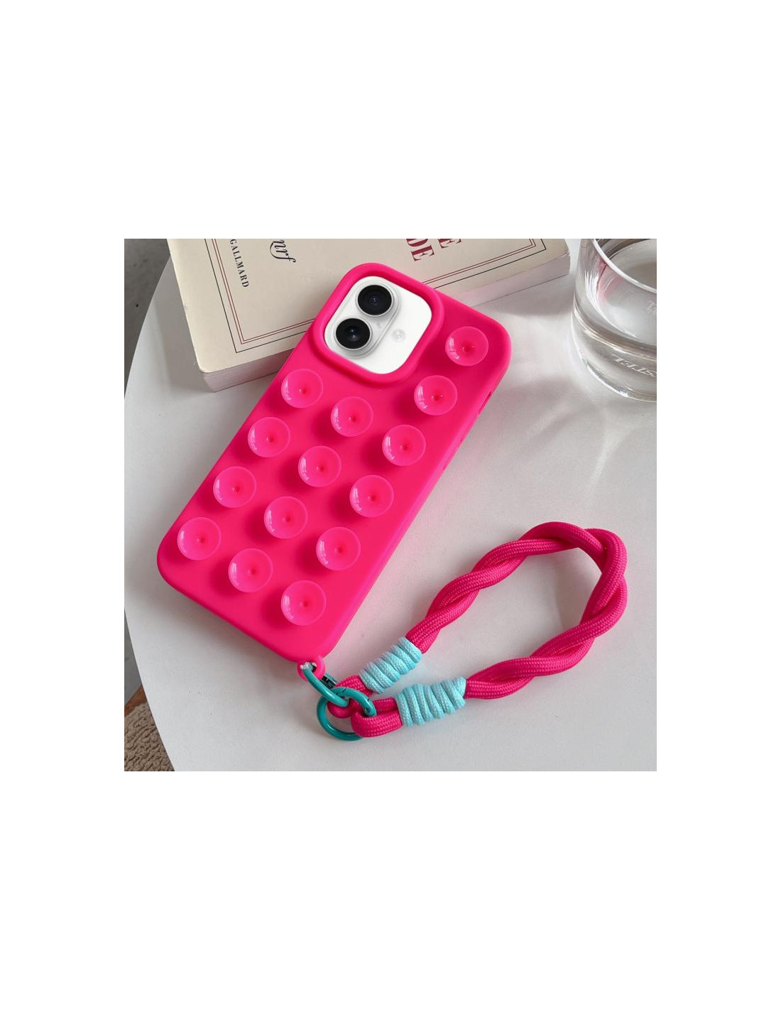 Proteggi il tuo iPhone 16 con stile grazie a questa elegante cover in silicone rosa. Realizzata in materiale morbido e resistente, offre una protezione completa del dispositivo mantenendo uno spessore minimo. La ventosa integrata ti permette di fissare il telefono su qualsiasi superficie liscia, mentre il cordino regolabile garantisce una portabilità comoda e sicura.