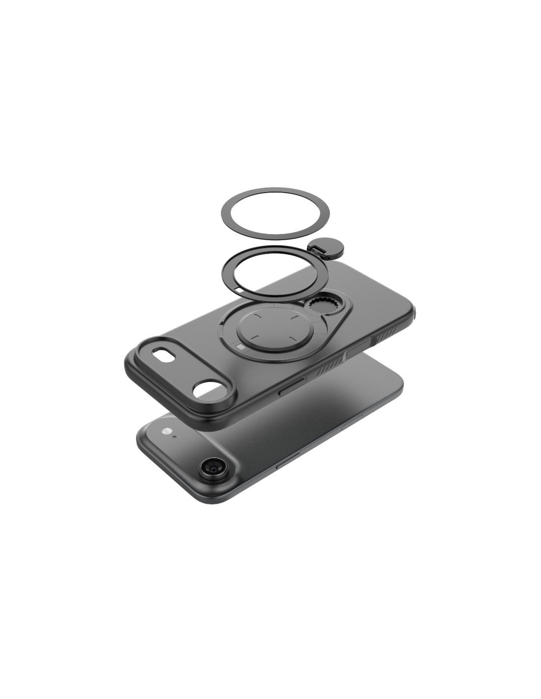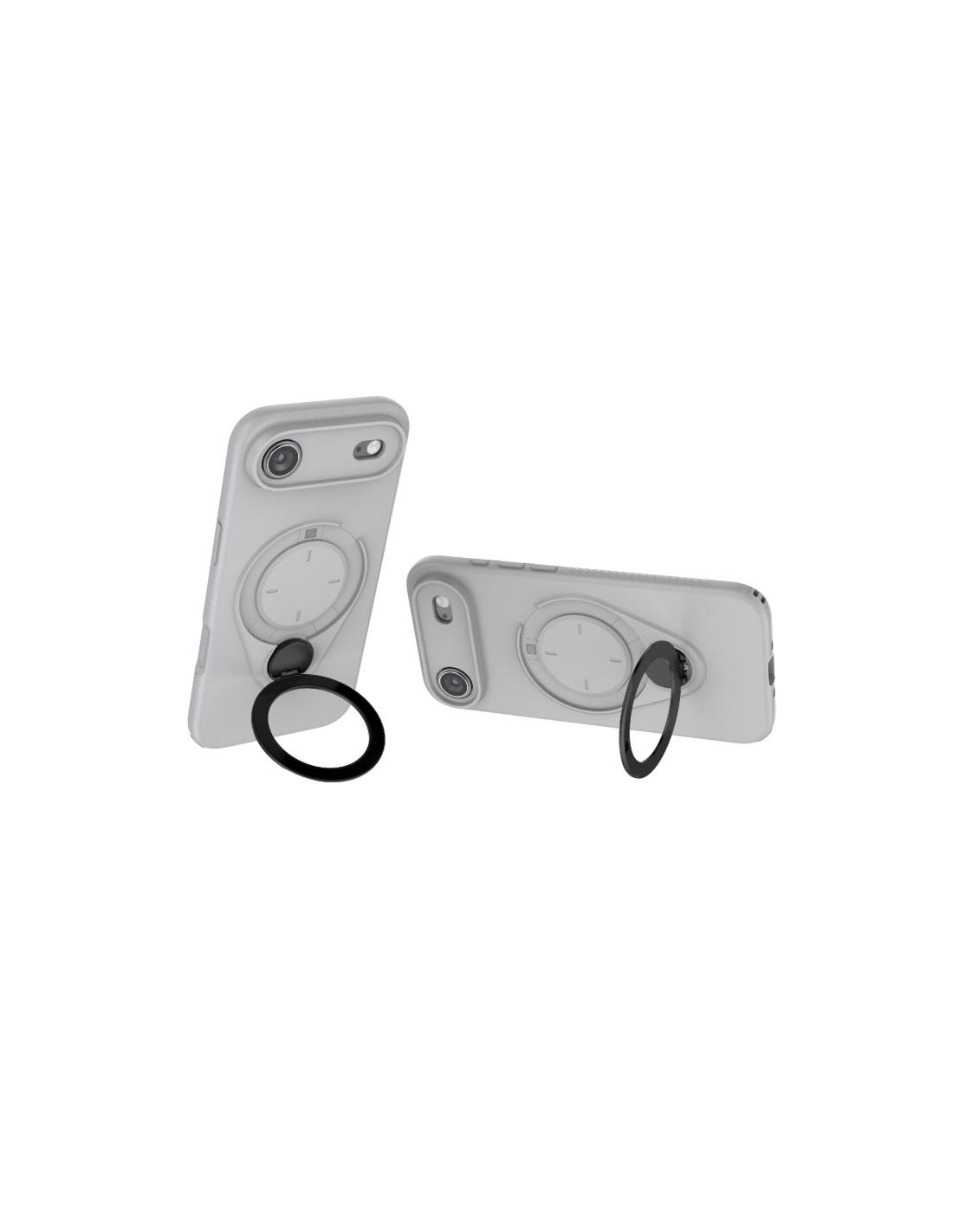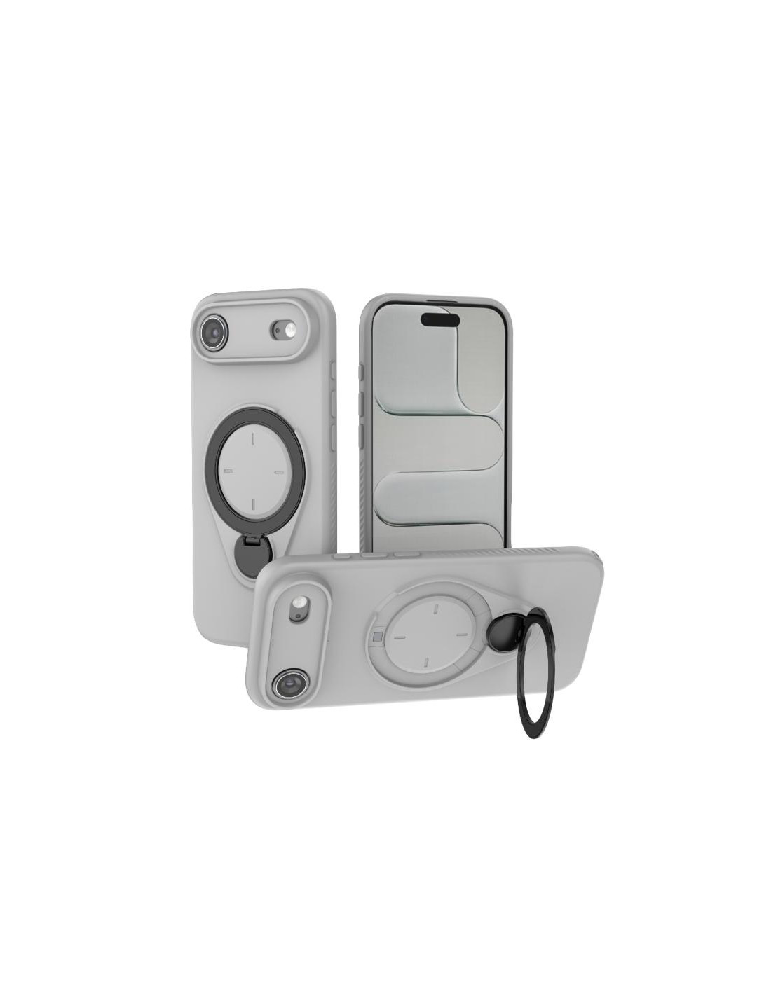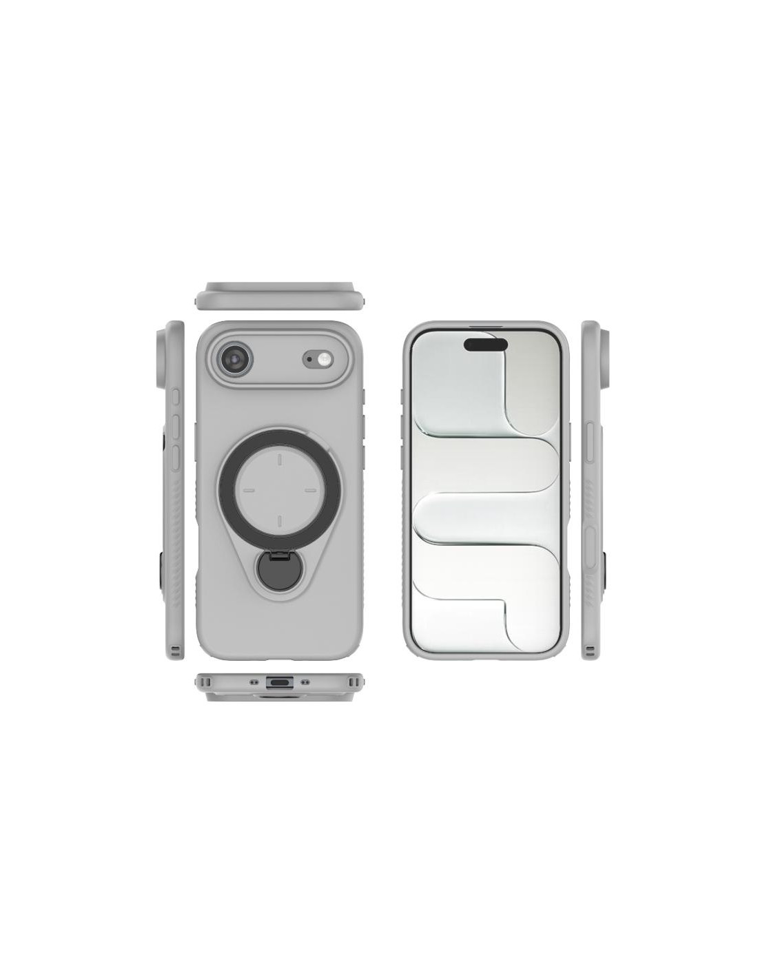 Cover TPU per iPhone Air con anello rotante 360° e supporto MagSafe. Protezione e praticità in grigio.