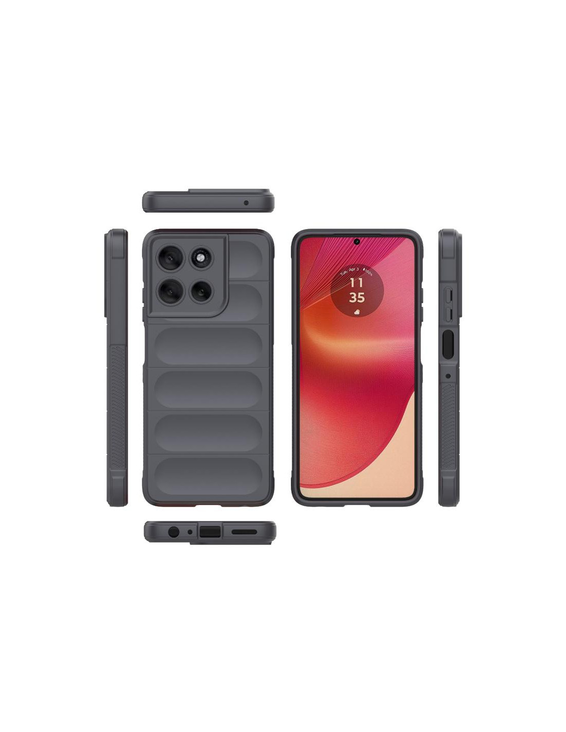 Cover protettiva Moto G56 5G in TPU e flanella. Protezione antiurto con design Magic Shield in grigio scuro.