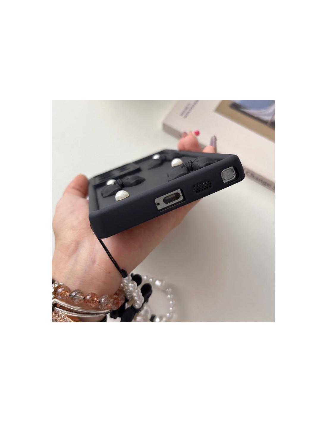 La cover in silicone morbido per Galaxy A16 4G combina protezione e stile con un design raffinato. Il caratteristico fiocco 3D in rilievo e le perline decorative del cordino da polso regalano un aspetto elegante e sofisticato al tuo smartphone.<