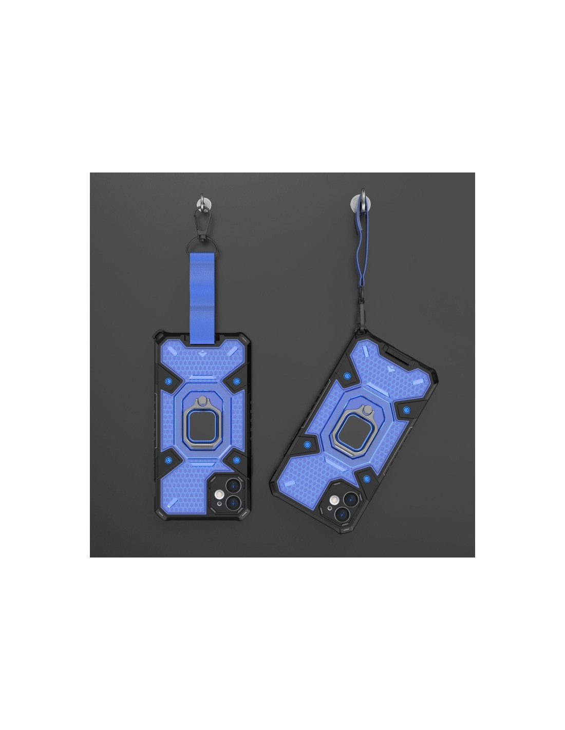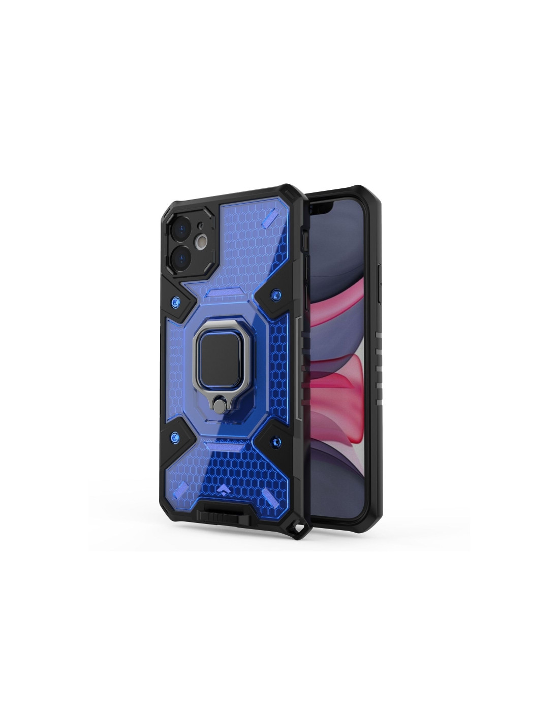 Cover protettiva iPhone 11 in PC e TPU con anello supporto. Design Space, colore blu.