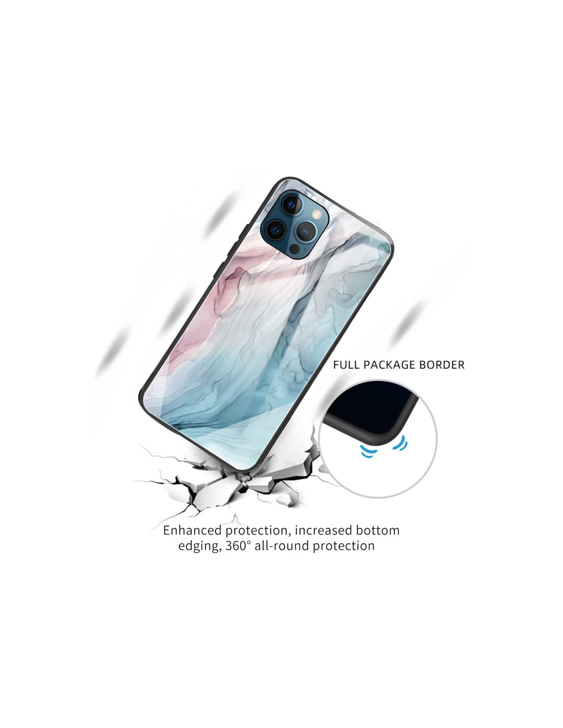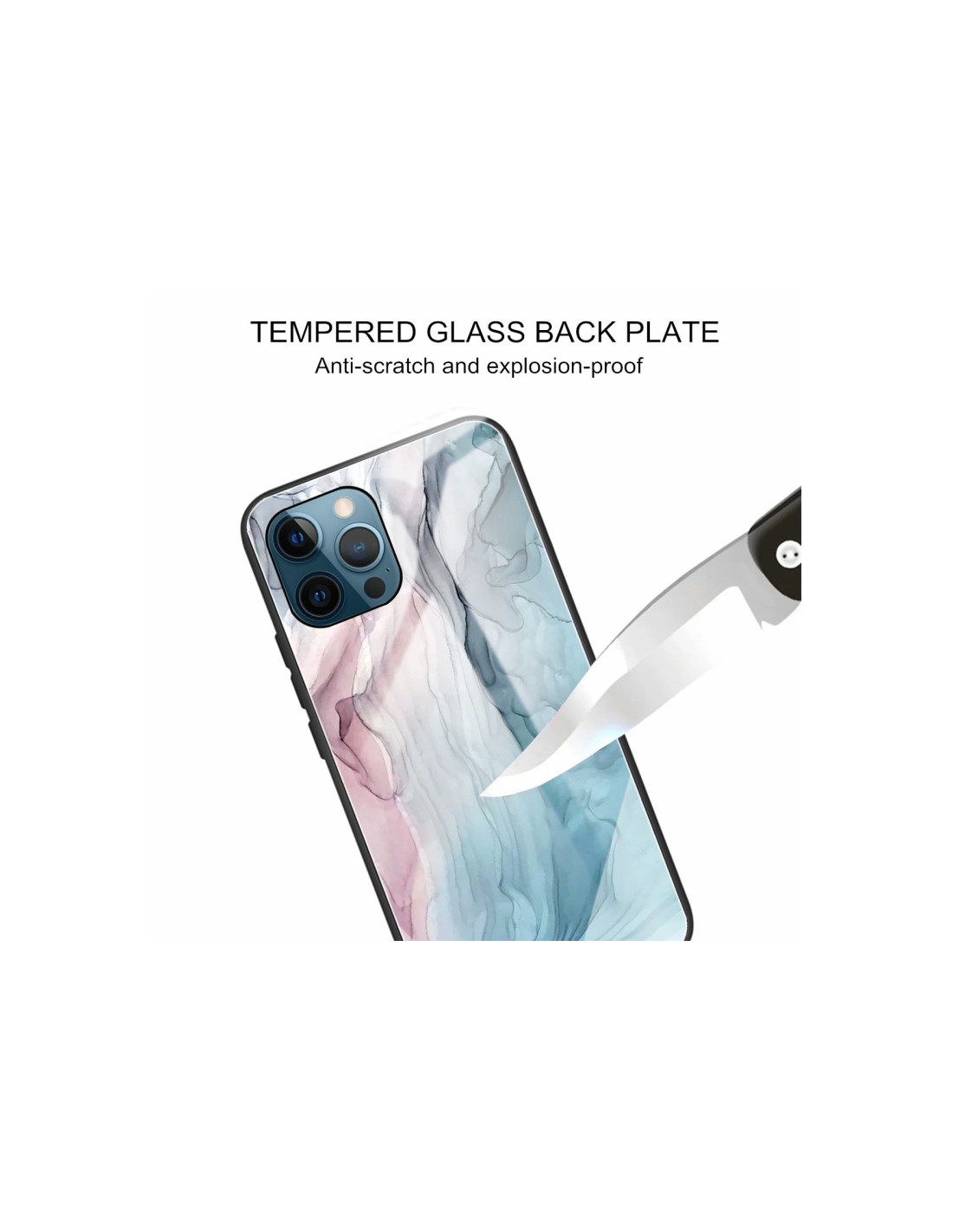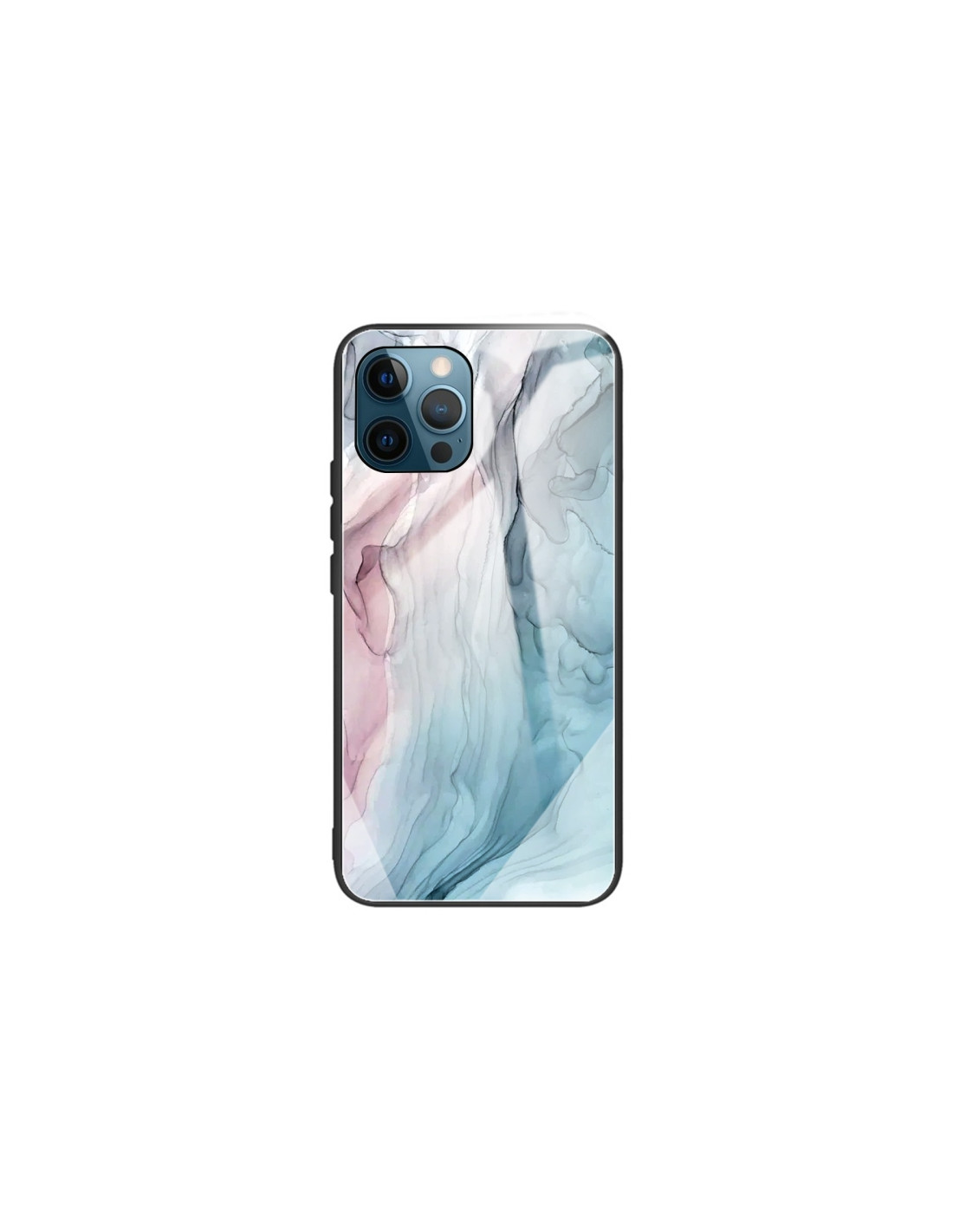 Cover iPhone 11 in vetro temperato e TPU con fantasia marmo astratto grigio. Protezione elegante e moderna.